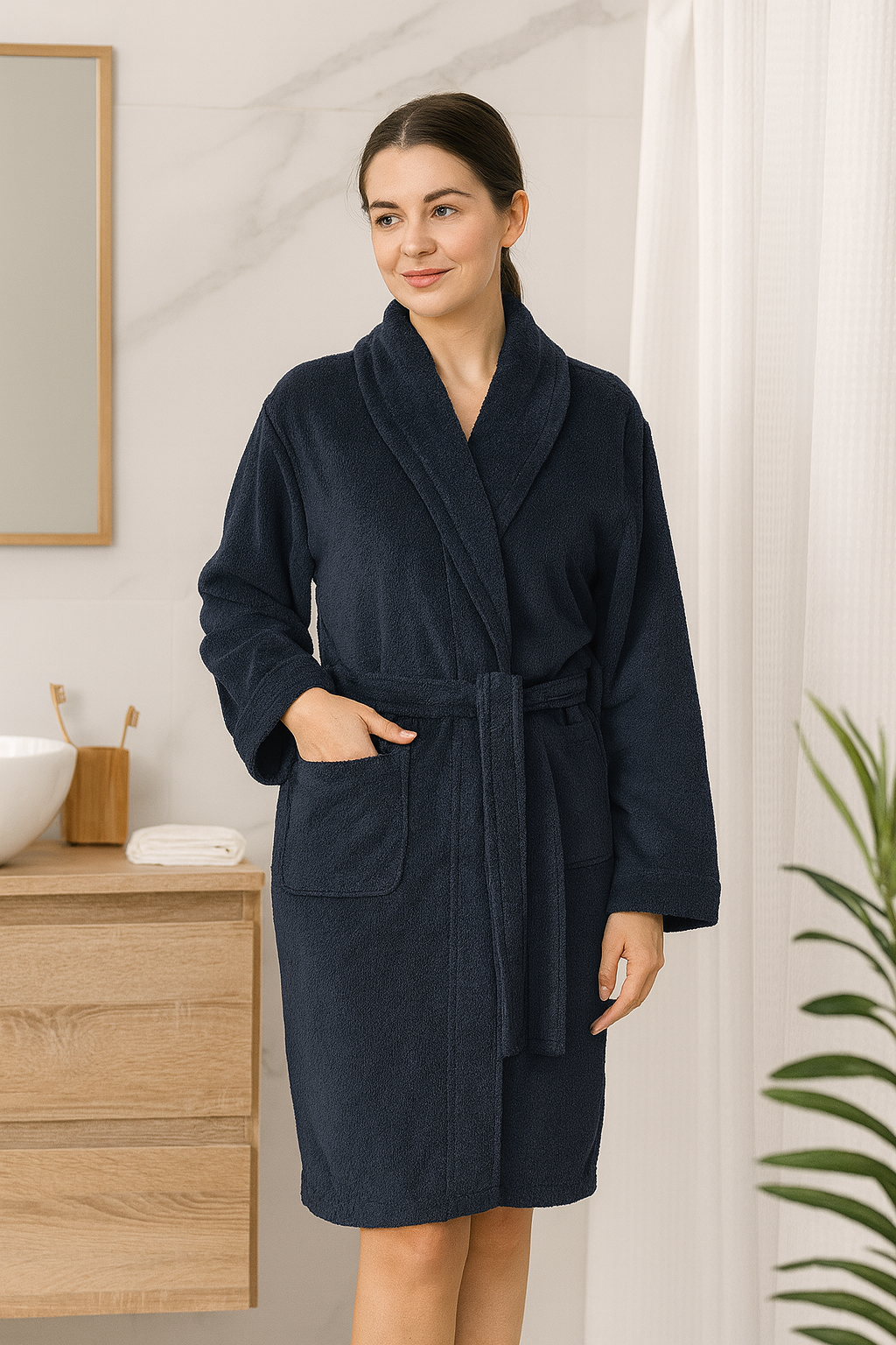 Halat de baie Velur 100% bumbac, bleumarin închis, universal, Cod: VBH8