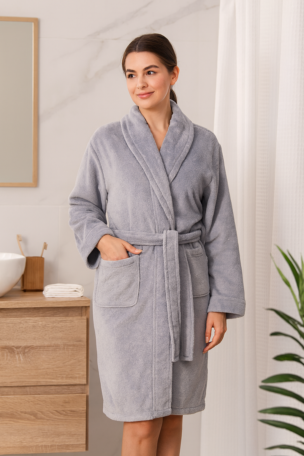 Halat de baie Velur 100% bumbac, gri, universal, Cod: VBH4