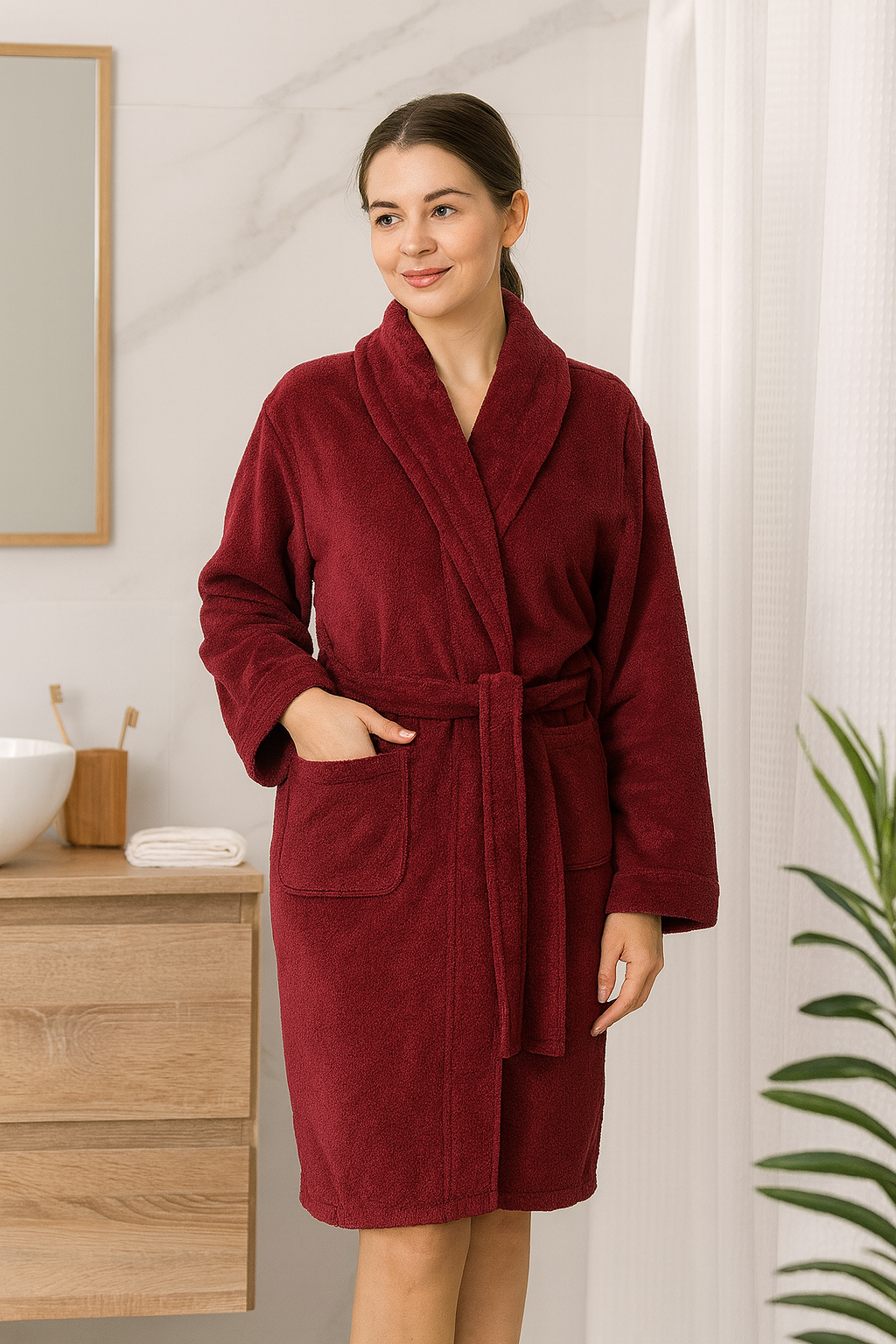 Halat de baie Velur 100% bumbac, roșu burgundy, universal, Cod: VBH6