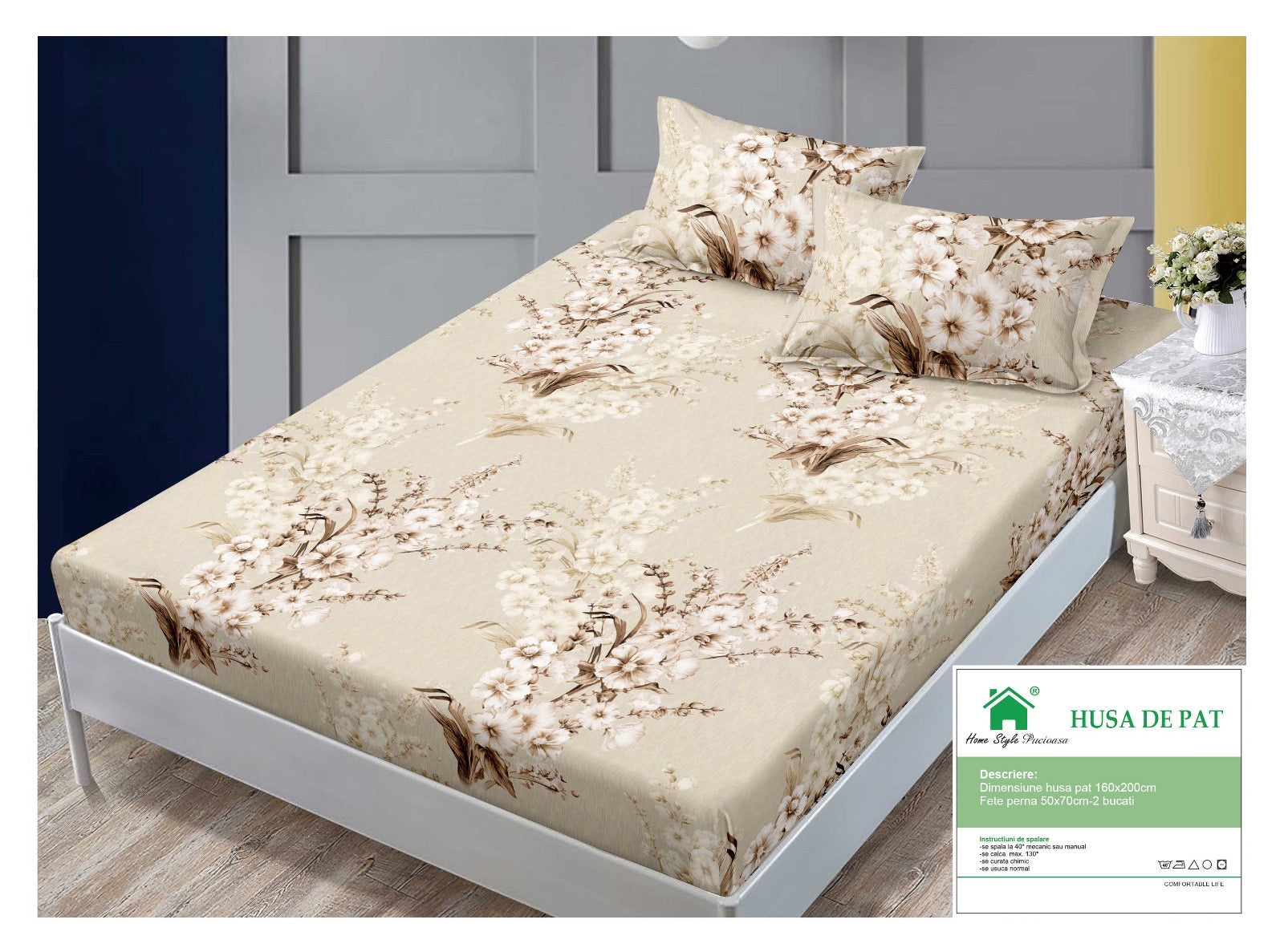 Descoperă Husa de Pat cu Elastic + 2 fețe de pernă – Eleganță, Versatilitate și Confort!