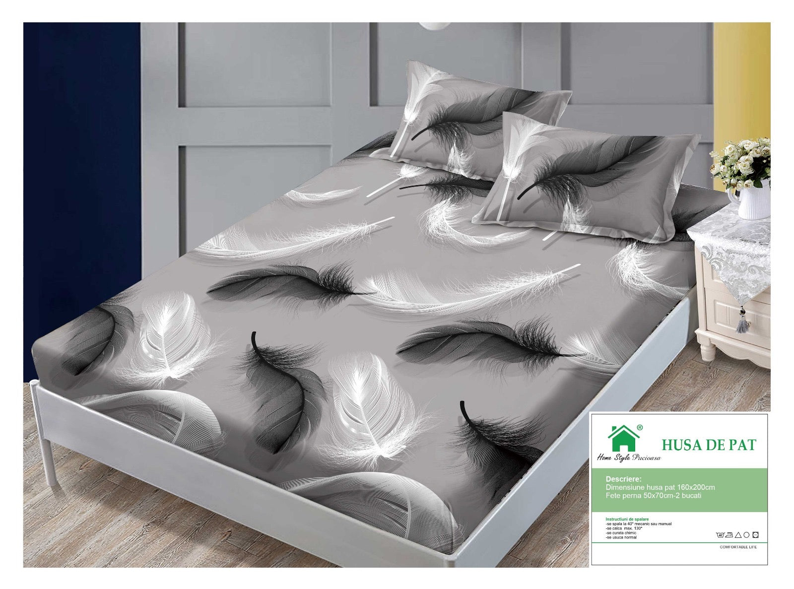 Descoperă Husa de Pat cu Elastic + 2 fețe de pernă – Eleganță, Versatilitate și Confort!