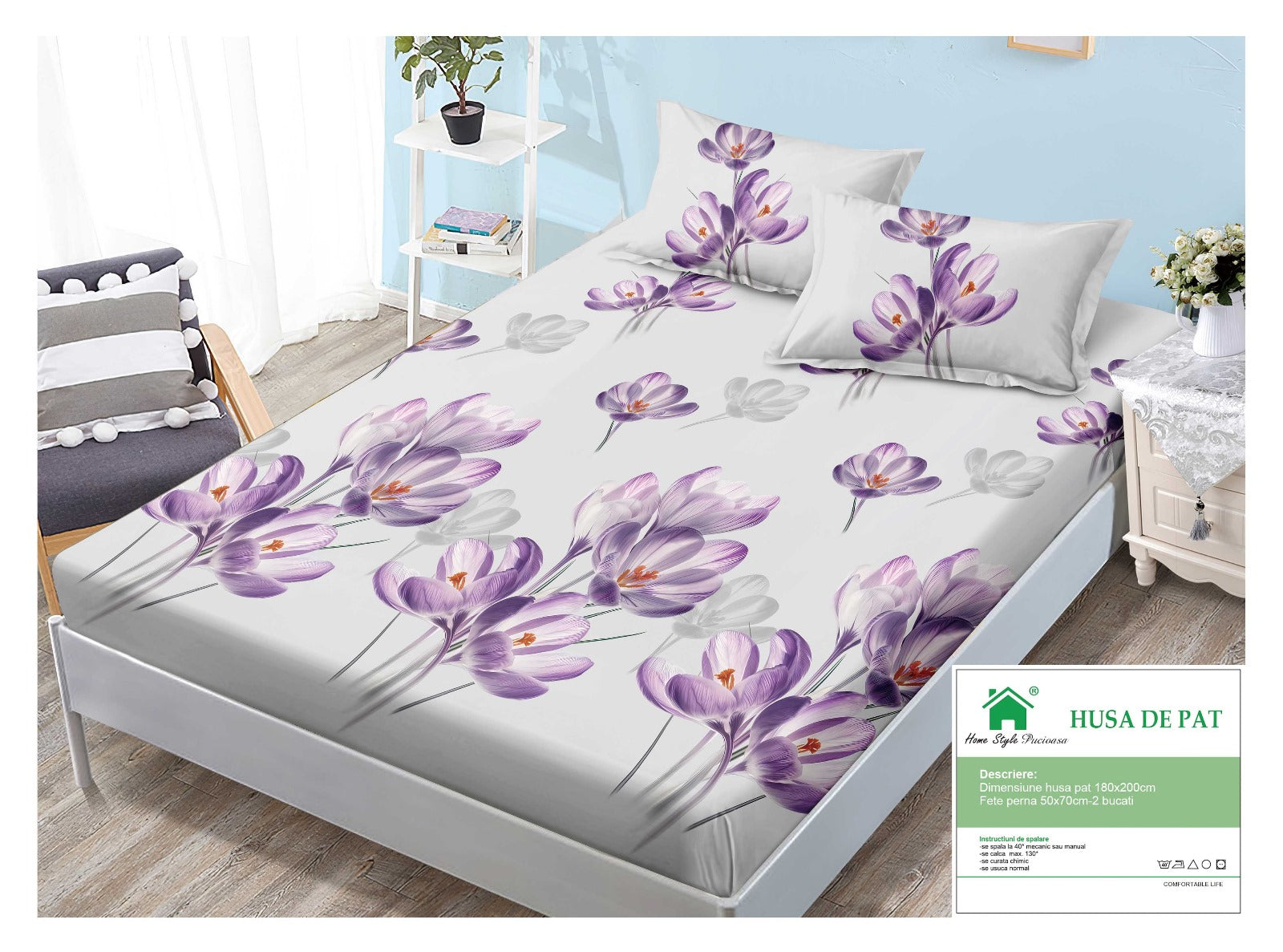 Descoperă Husa de Pat cu Elastic + 2 fețe de pernă – Eleganță, Versatilitate și Confort!