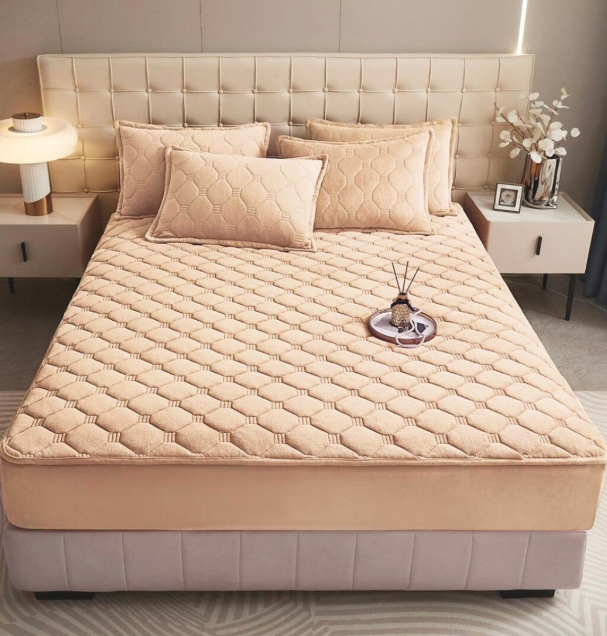 Aceste huse de saltea cu elastic și topper inclus oferă un plus de confort pentru somnul tău și o soluție eficienta daca iti doresti ca patul tau sa fie mai moale cand te asezi pe el. Fabricate din catifea foarte moale și confortabila, aceste huse de saltea oferă protecție suplimentară și susțin nestingherit și uniform spatele. În plus, acestea includ și două fețe de pernă pentru un somn odihnitor și relaxant. Înlocuind husele obișnuite de saltea cu aceste huse cu Topper inclus, îți vei îmbunătăți semnificativ calitatea somnului.