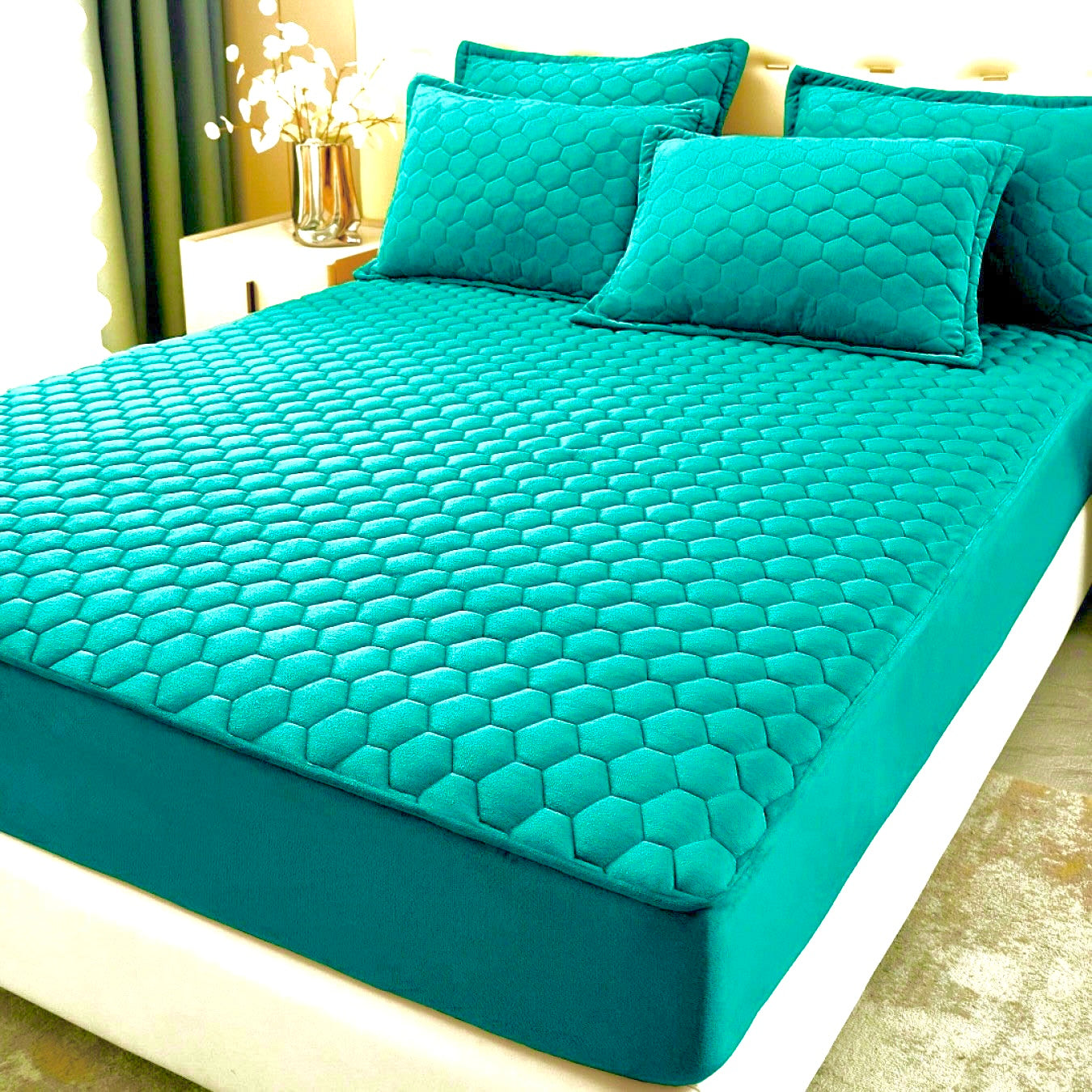 Aceste huse de saltea cu elastic și topper inclus oferă un plus de confort pentru somnul tău și o soluție eficienta daca iti doresti ca patul tau sa fie mai moale cand te asezi pe el. Fabricate din catifea foarte moale și confortabila, aceste huse de saltea oferă protecție suplimentară și susțin nestingherit și uniform spatele. În plus, acestea includ și două fețe de pernă pentru un somn odihnitor și relaxant. Înlocuind husele obișnuite de saltea cu aceste huse cu Topper inclus, îți vei îmbunătăți semnificativ calitatea somnului.