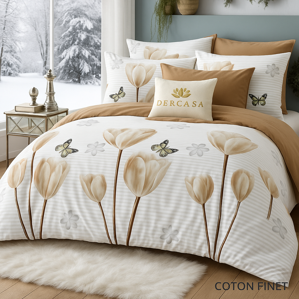 Transformă-ți dormitorul într-un spațiu de relaxare rafinat cu această lenjerie de pat premium din bumbac finet moale, special creată pentru un somn odihnitor și o atmosferă elegantă. Materialul este plăcut la atingere, rezistent și ușor de întreținut, oferind un confort sporit indiferent de anotimp.