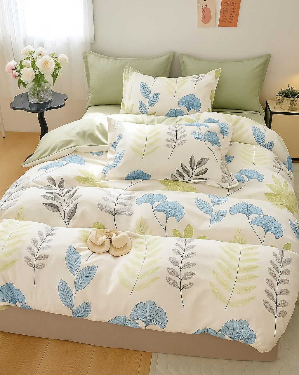 Lenjerie de pat din bumbac fin 6 piese(cearșaf de pat cu elastic) Cod: FNF309