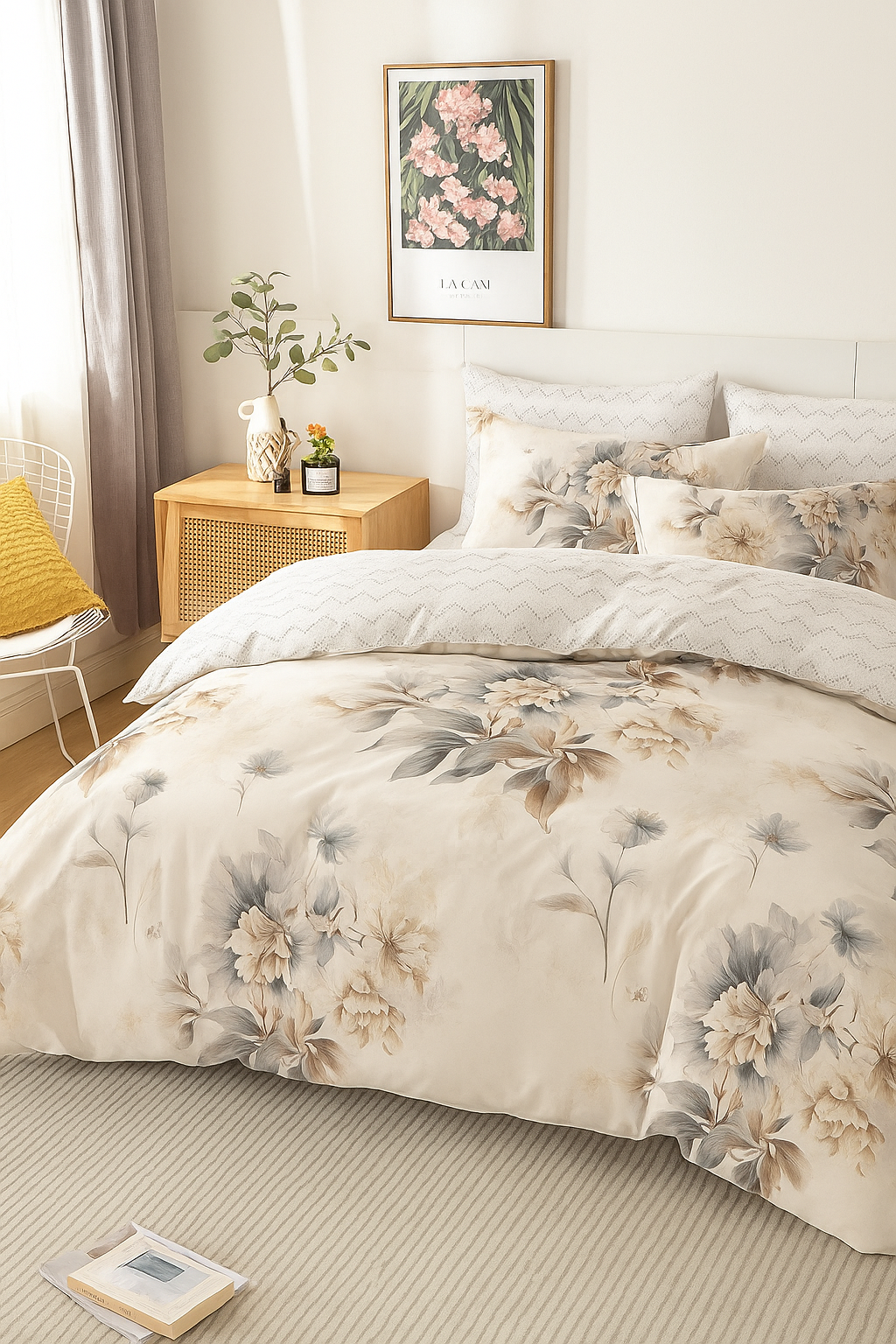 Lenjerie de pat din bumbac fin 6 piese(cearșaf de pat cu elastic) Cod: FNF313