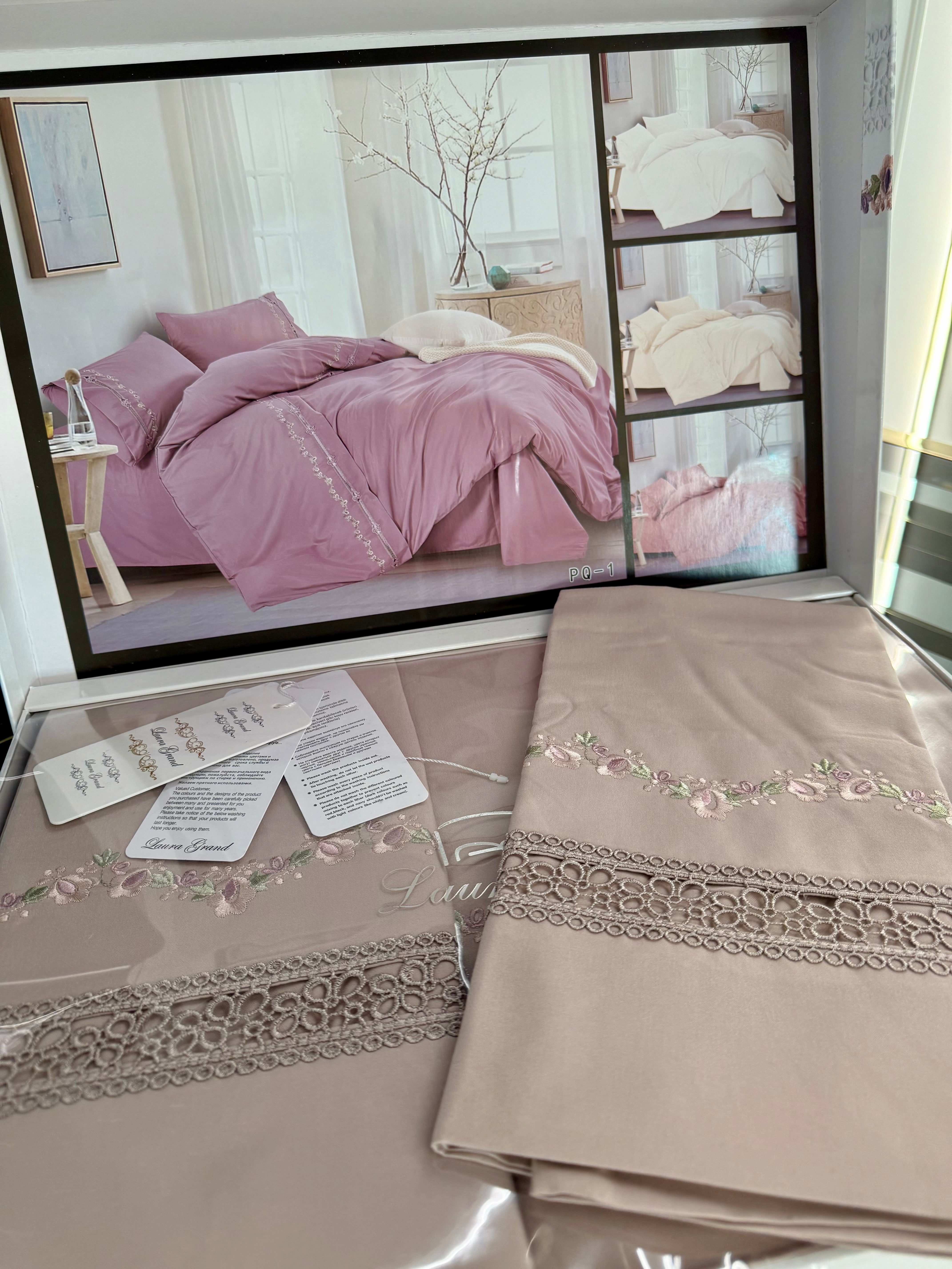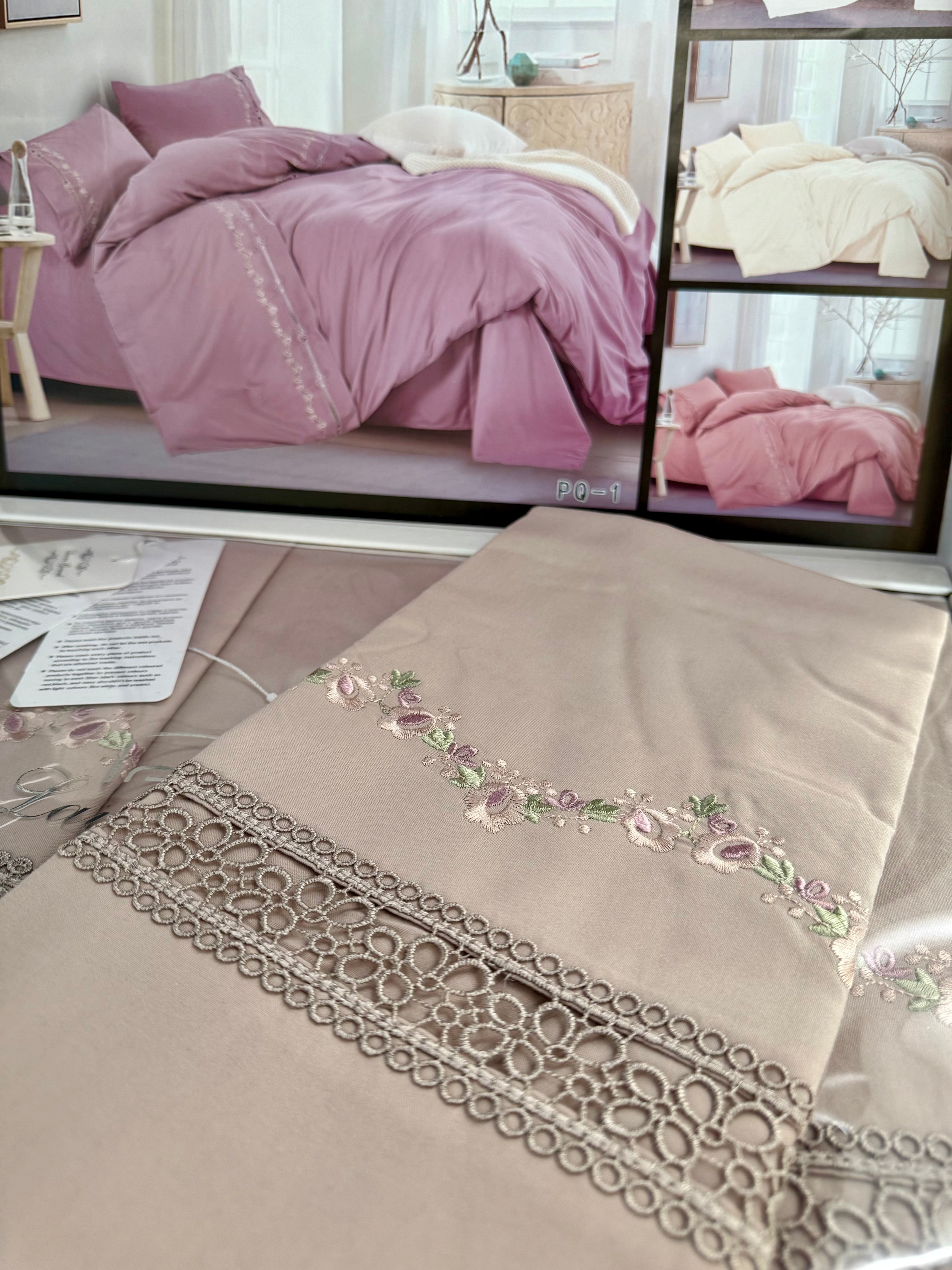 Lenjerie de Pat Luxury „Dantelă și Petale” – PQ-1 somon pudrat
