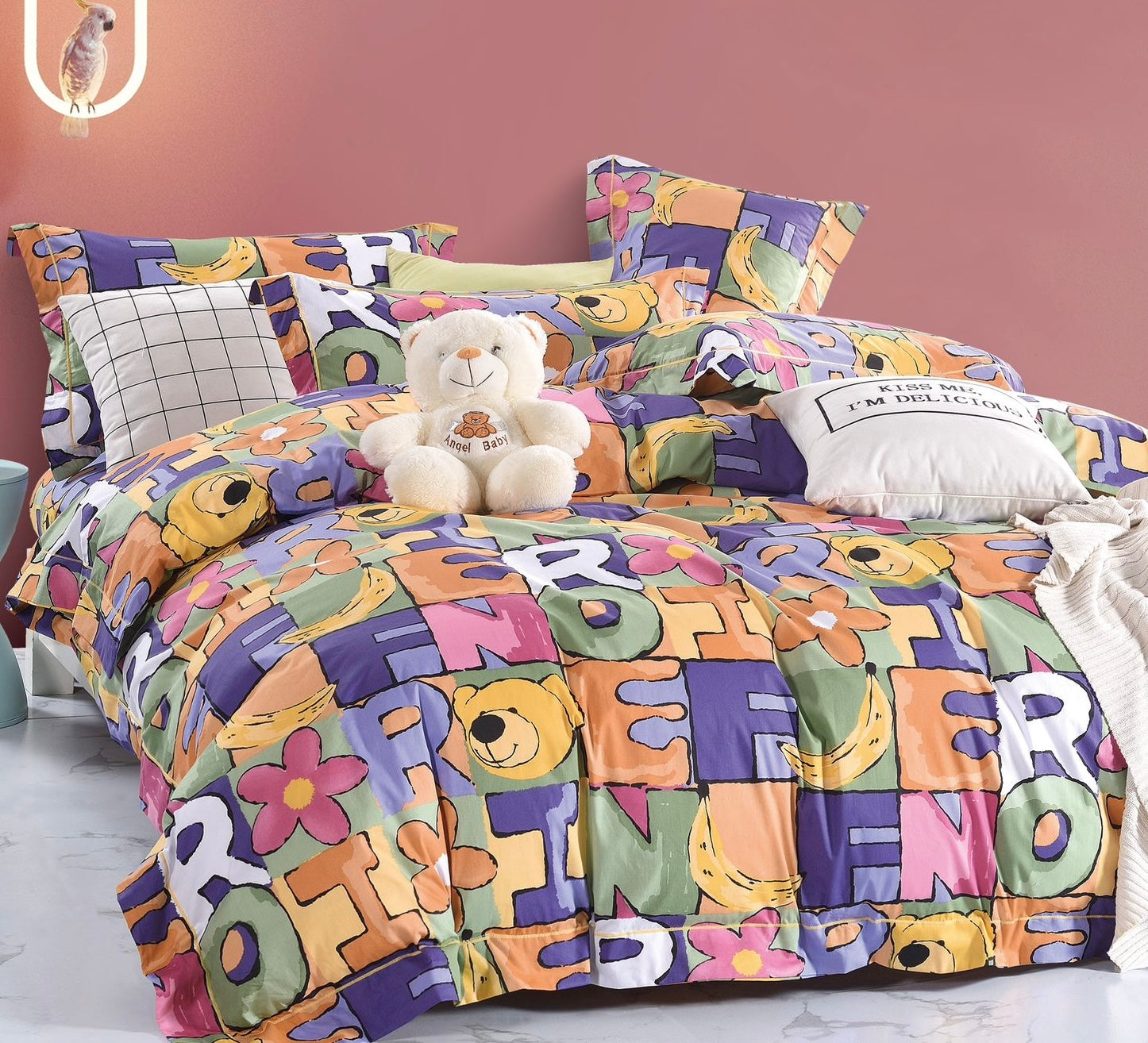 Lenjerie pentru pat Bumbac 💯 Kids Collection, cu 4 piese, confectionata din Bumbac 100%; Setul contine: Cearsaf de...