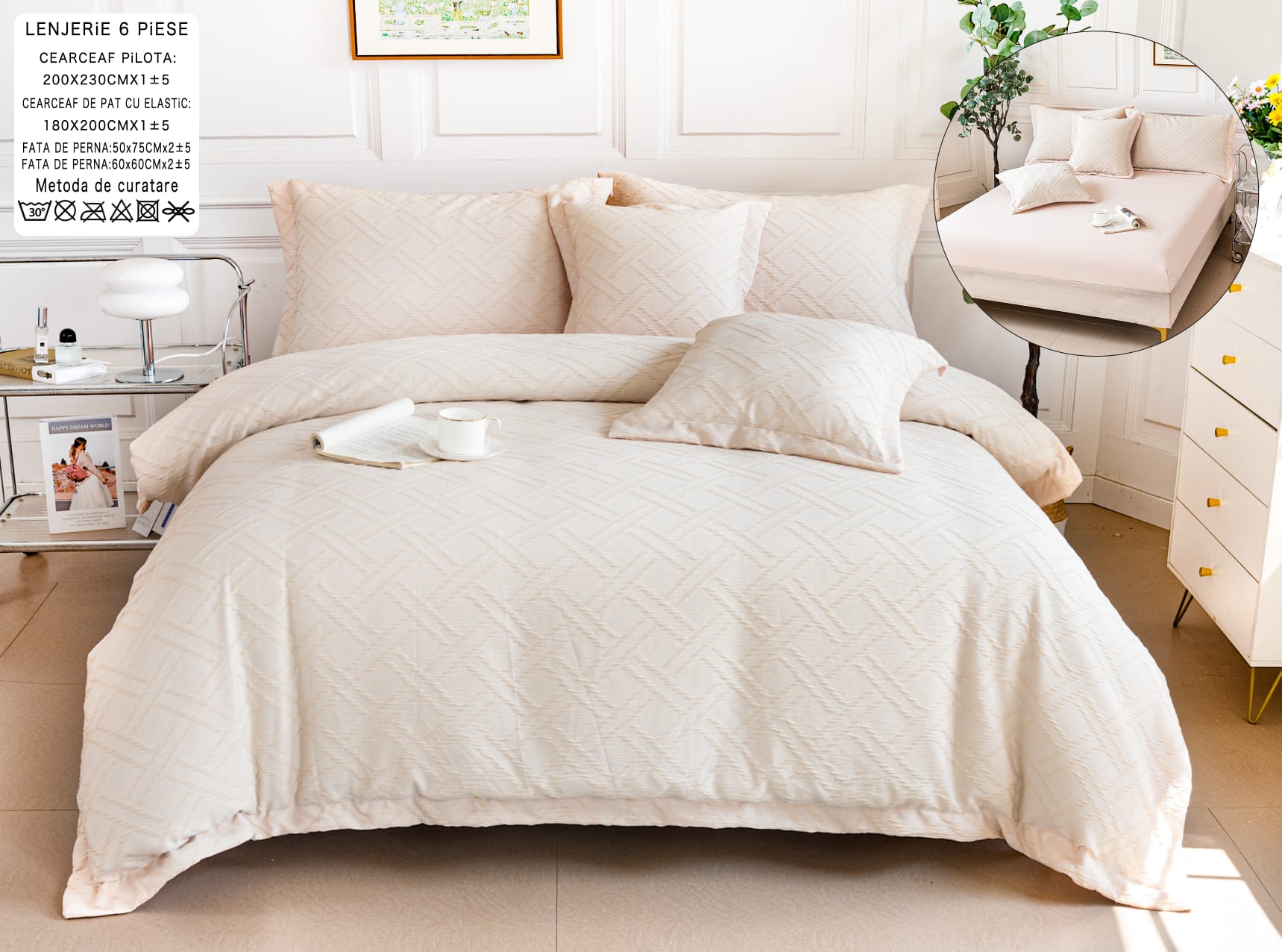 Lenjerie Deluxe Relief, Bumbac+In, grofate, 6 piese, cearșaf cu elastic DRG18