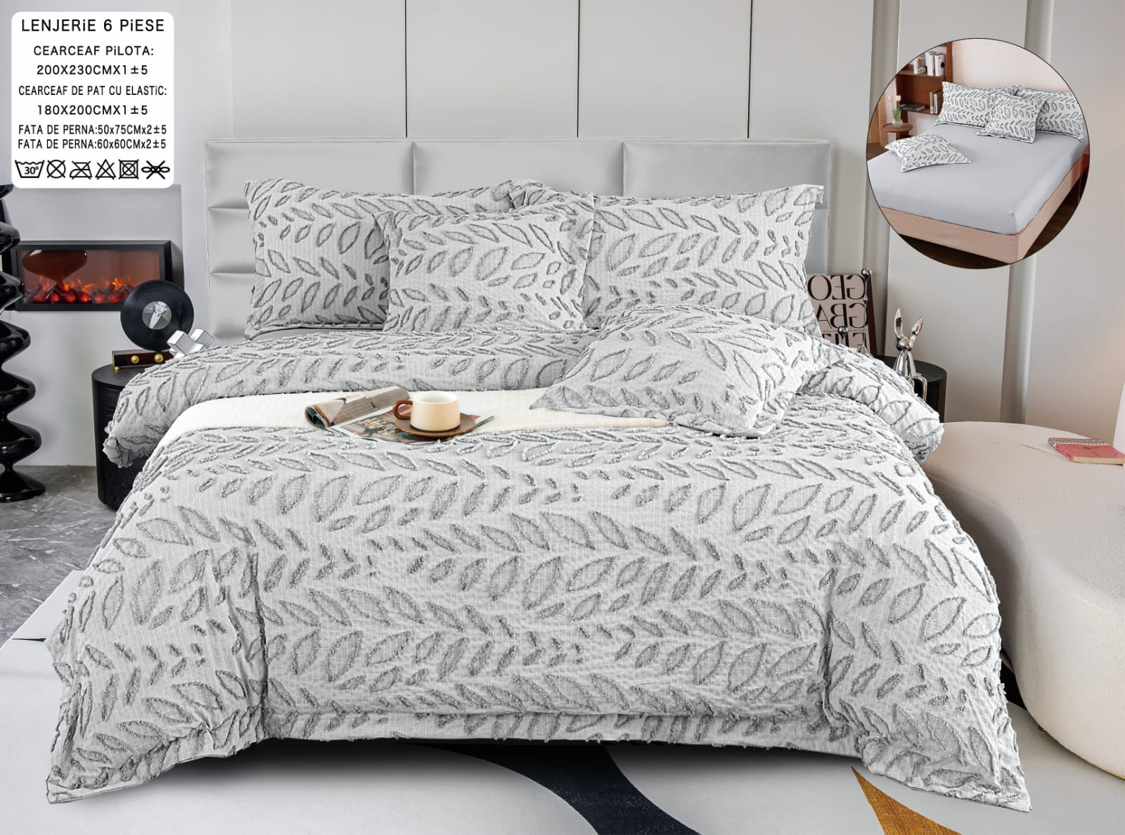 Lenjerie Deluxe Relief, Bumbac+In, grofate, 6 piese, cearșaf cu elastic DRG6