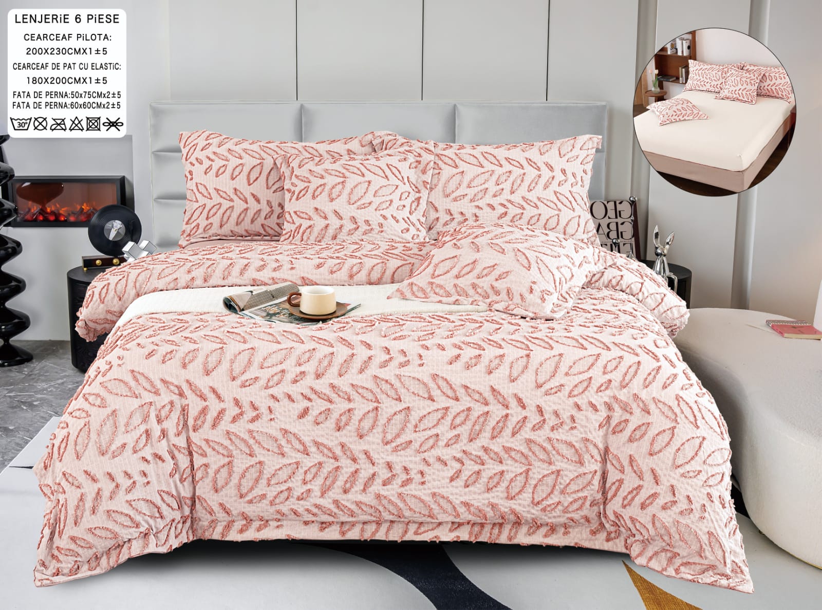 Lenjerie Deluxe Relief, Bumbac+In, grofate, 6 piese, cearșaf cu elastic DRG9