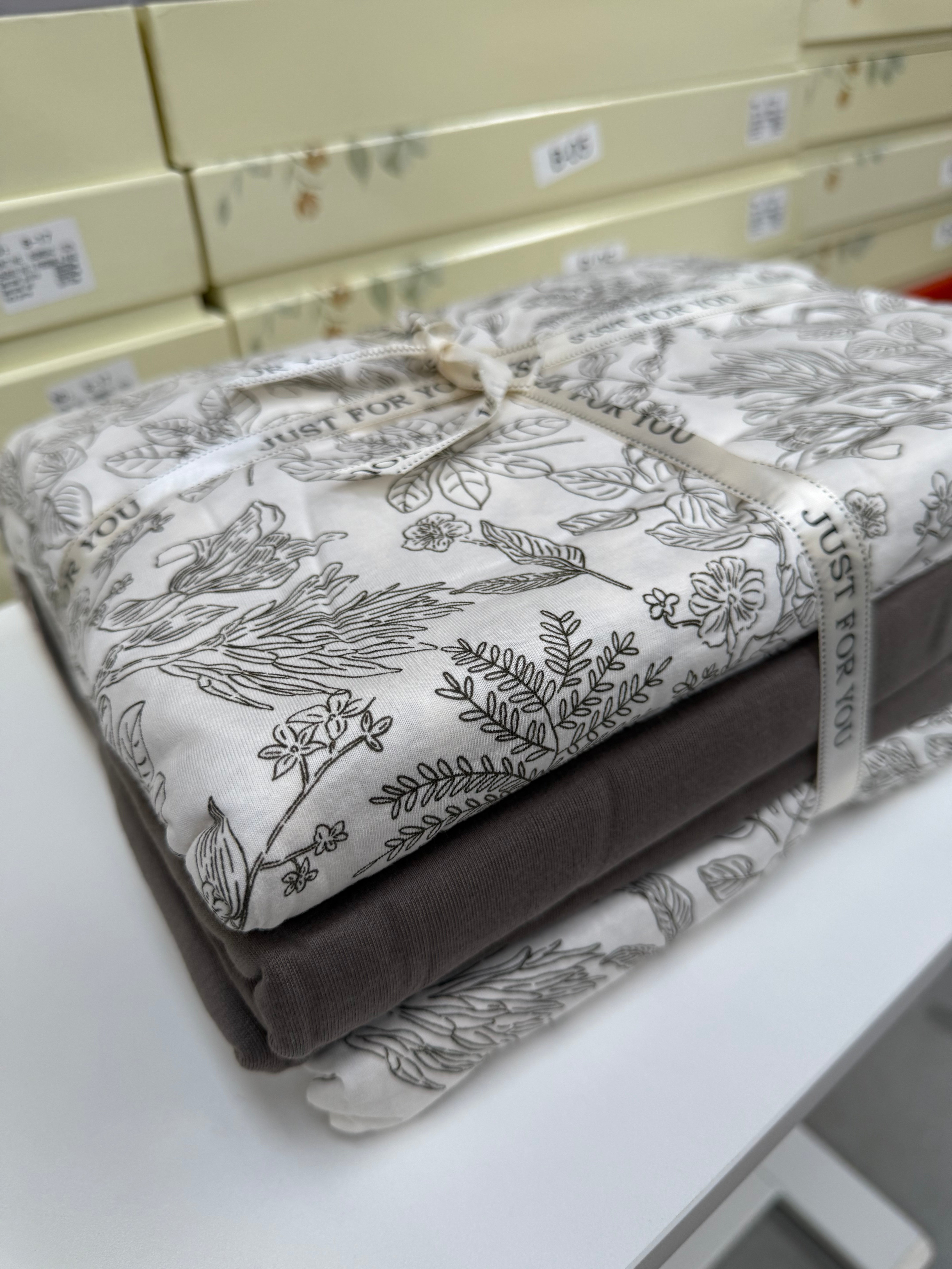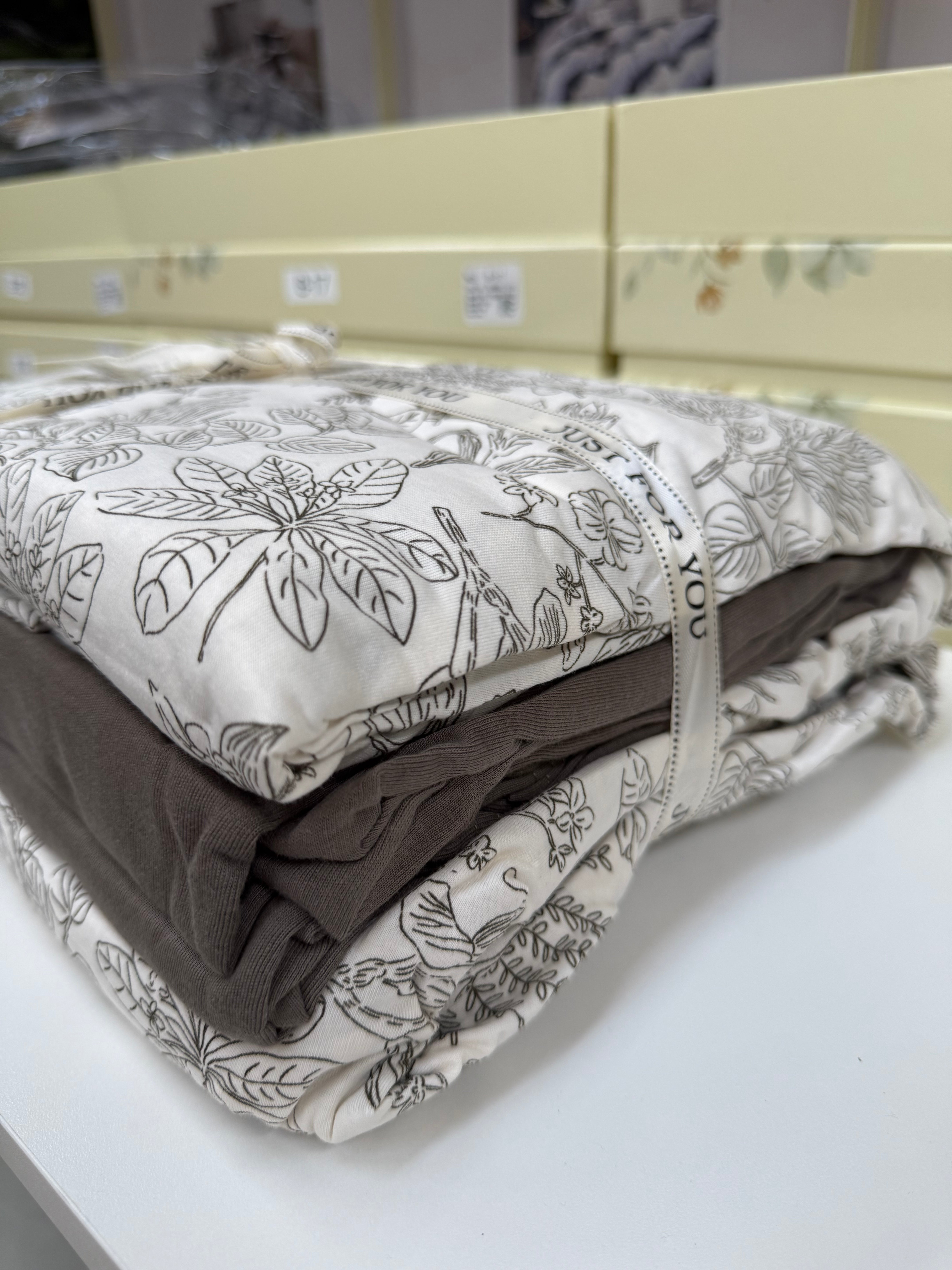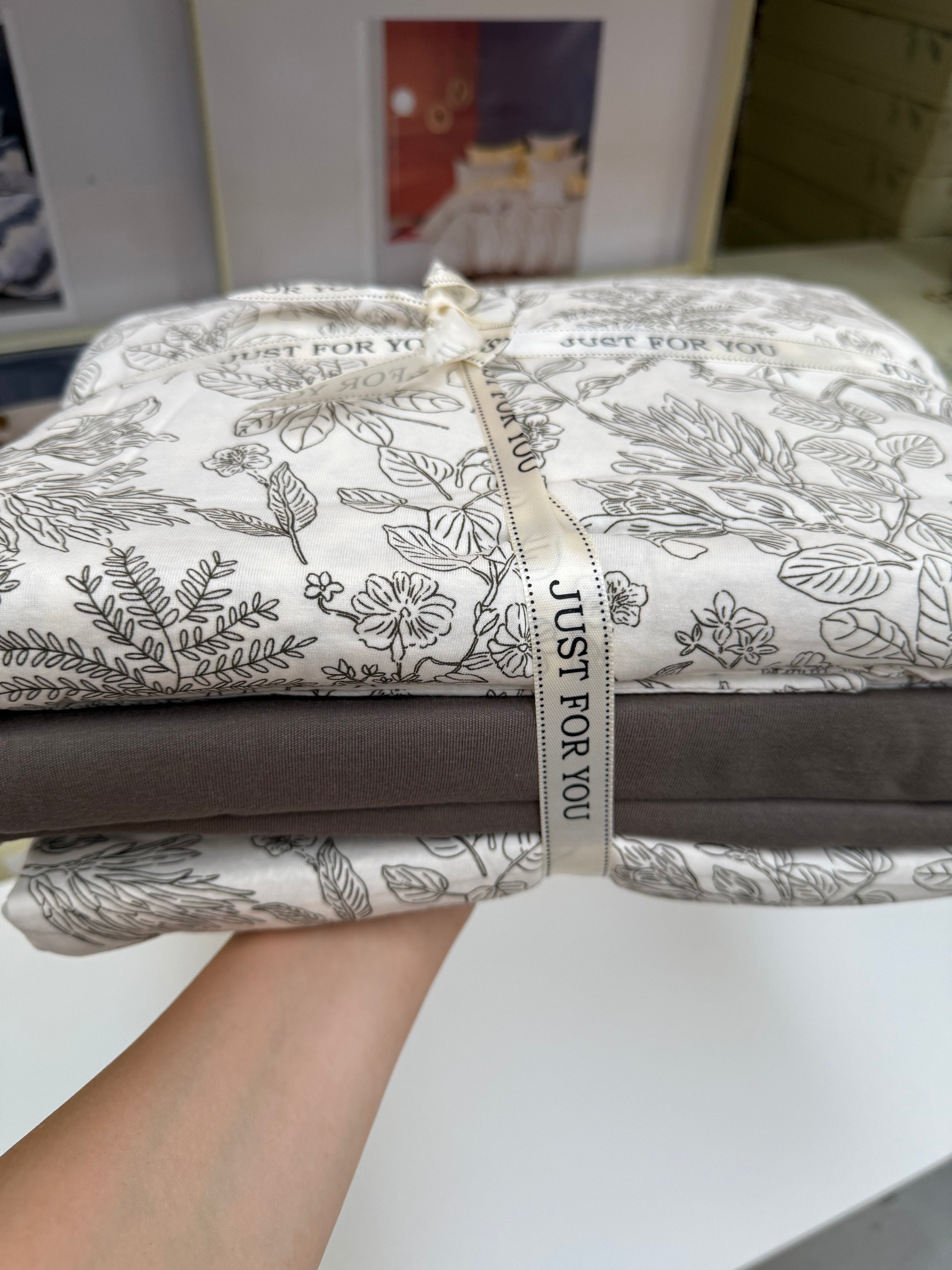 Transformă-ți dormitorul într-un spațiu de relaxare și confort cu această lenjerie de pat din bumbac tricot 100%, moale, elastic și plăcut la atingere. Imprimeul botanic cu ramuri verzi și detalii subtile adaugă o notă naturală și elegantă oricărui decor. Perfectă pentru un somn odihnitor și o atmosferă plăcută, indiferent de anotimp.