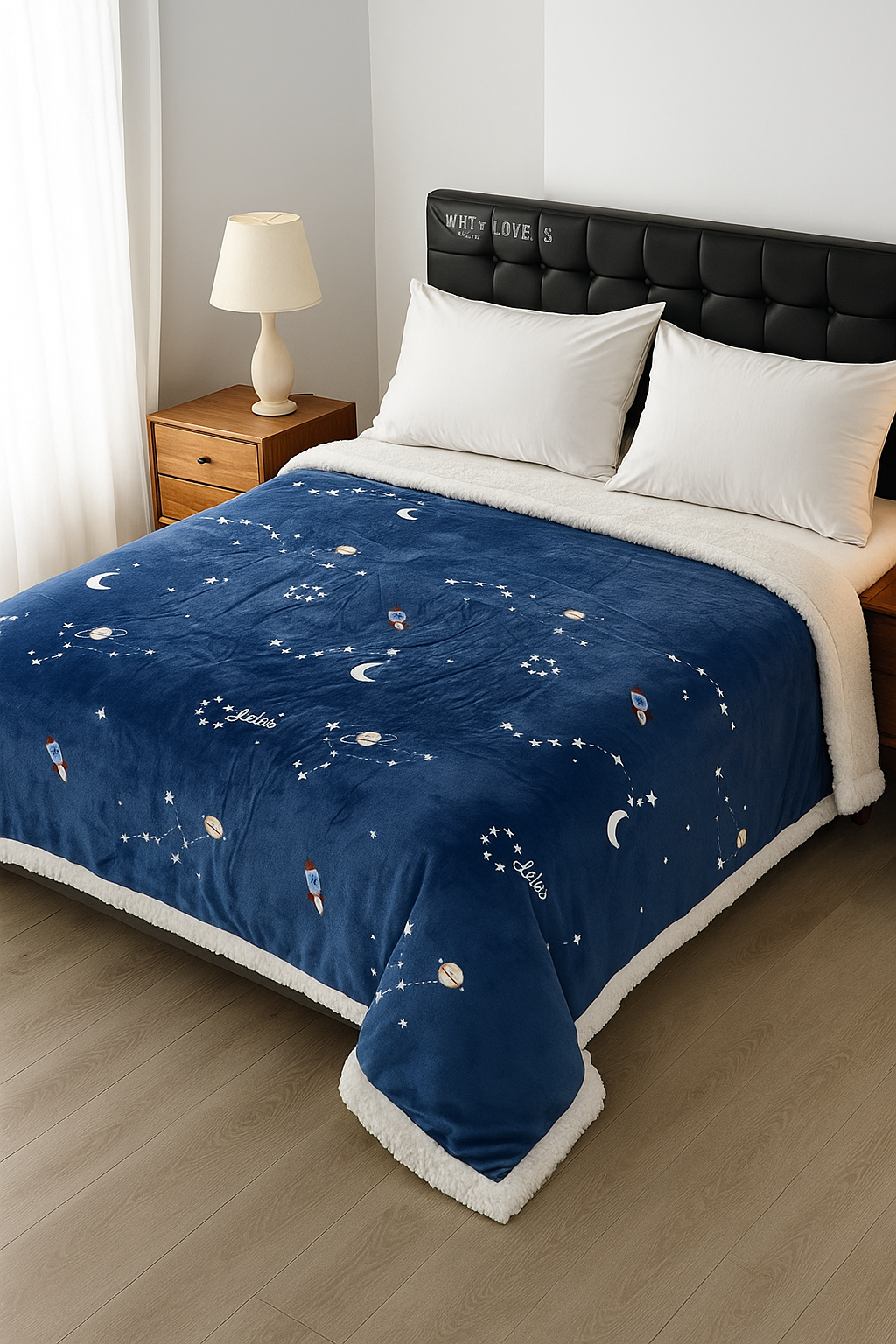 Patura are 2 fete, este dubla. Pe prima fata este un imprimeu identic cu imaginea, iar pe cealalta parte are blanita albă , moale si placuta la atingere.