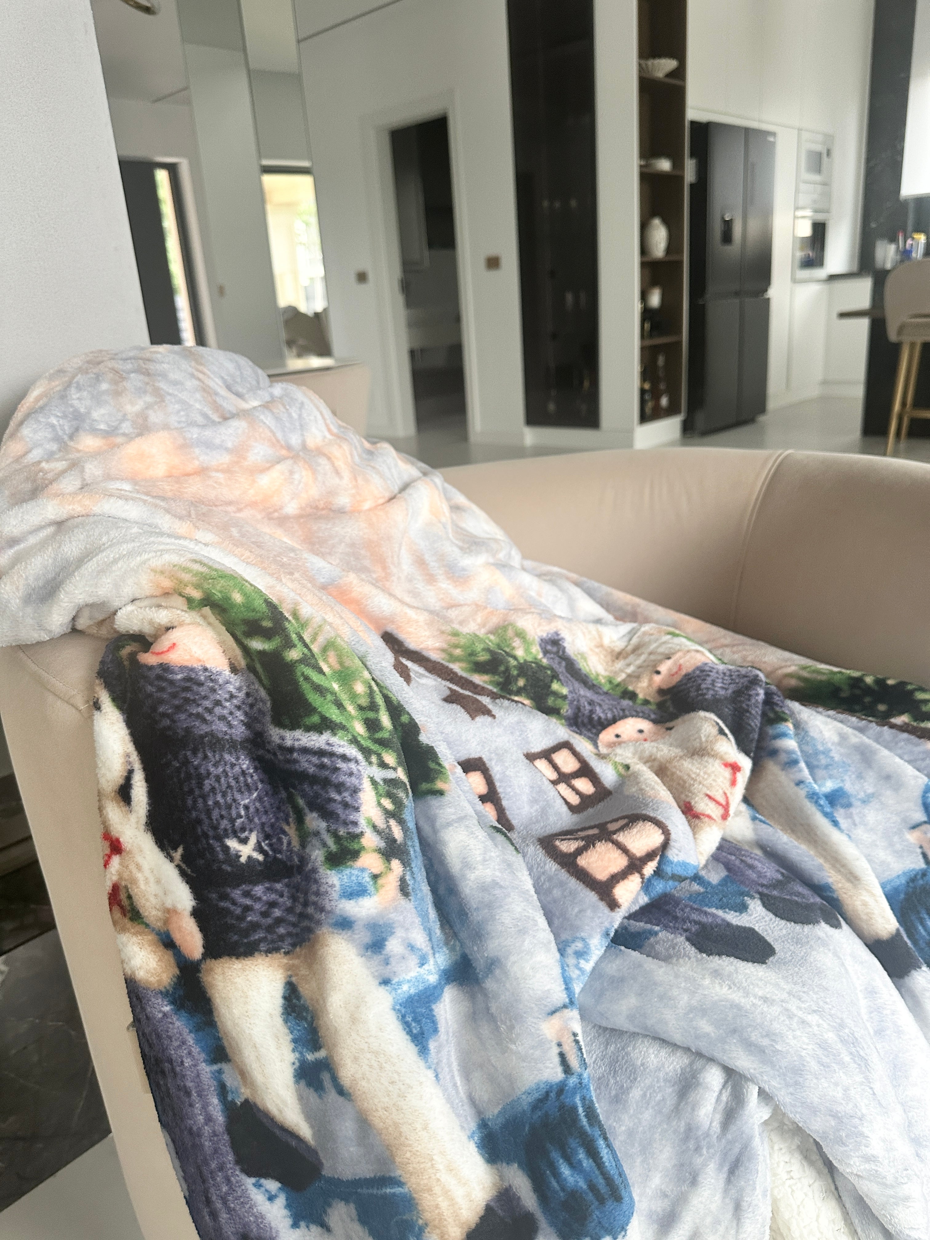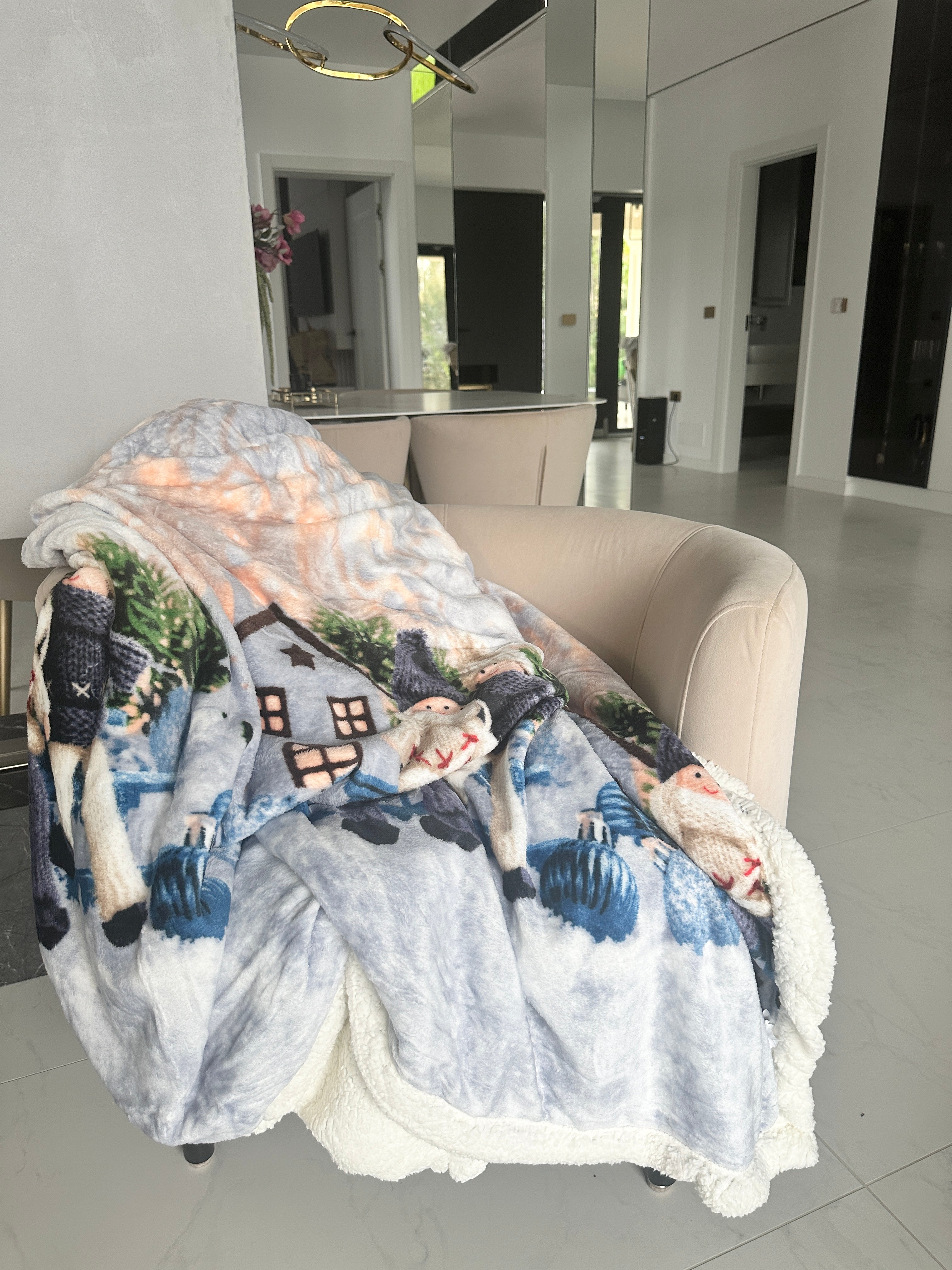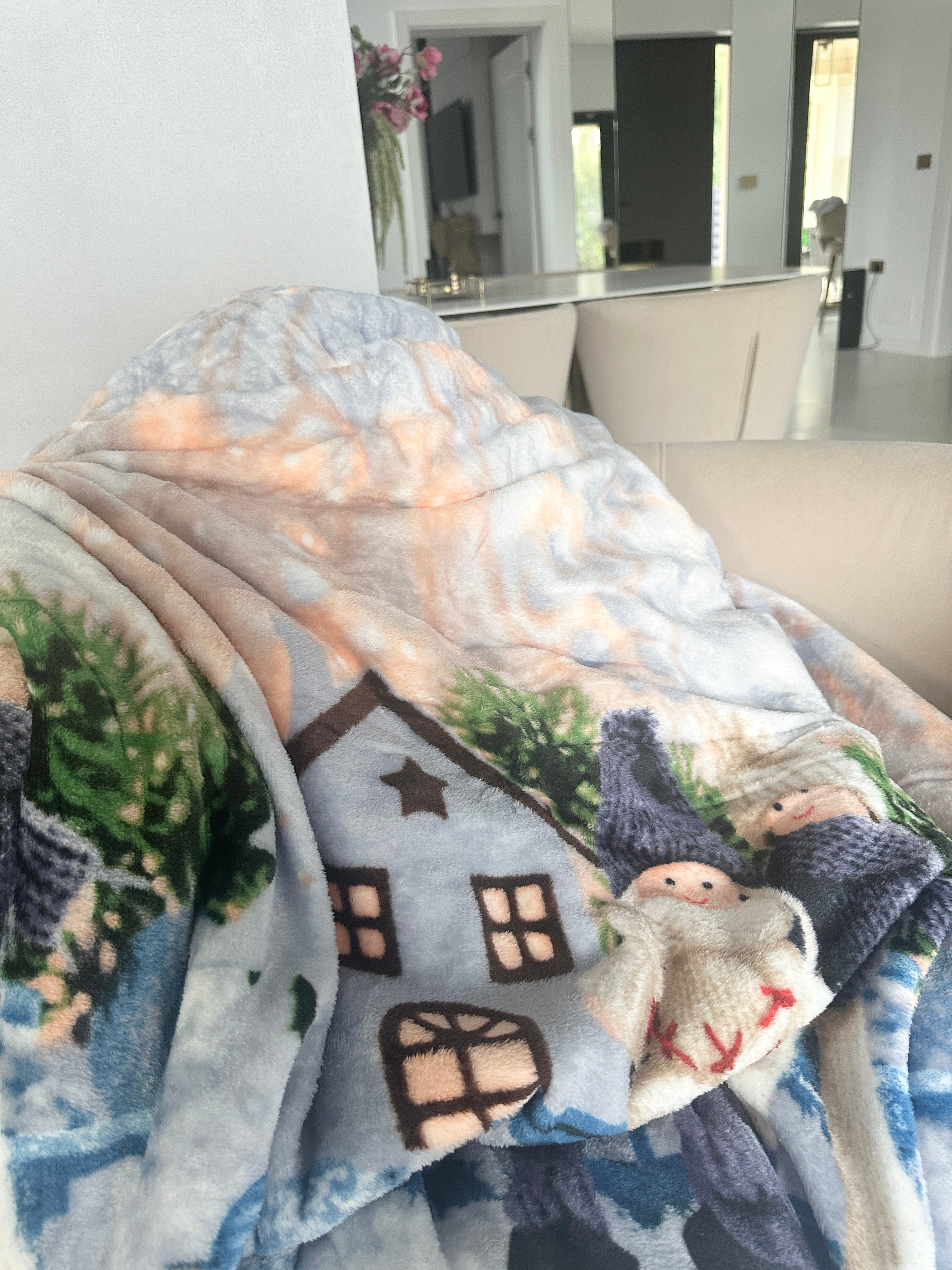 Pătura Cocolino se remarcă prin designul său dual, având o parte din blăniță moale și pufoasă, care oferă o senzație plăcută la atingere, perfectă pentru serile reci. Cealaltă parte este confecționată dintr-un material fleece de calitate, imprimat cu motive festive specifice sărbătorilor de iarnă, precum fulgi de zăpadă, brăduți și alte simboluri ale Crăciunului, ce aduc un strop de magie în orice cameră.