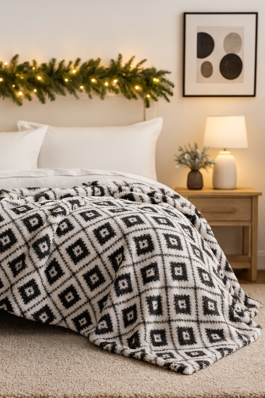 Adaugă un plus de confort și eleganță dormitorului tău cu această pătură pufoasă, care îmbină funcționalitatea cu designul rafinat.