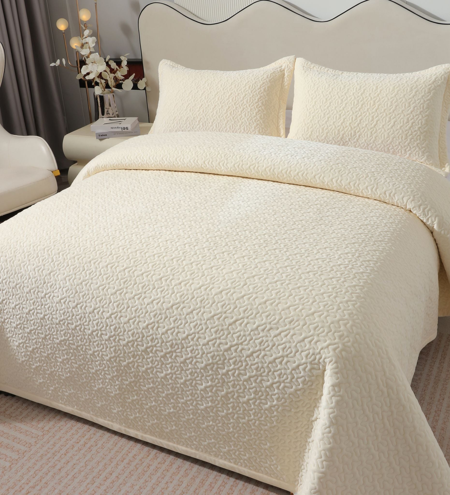 Cuvertură de pat din catifea cu două fețe de pernă Adaugă un plus de eleganță și confort dormitorului tău cu...