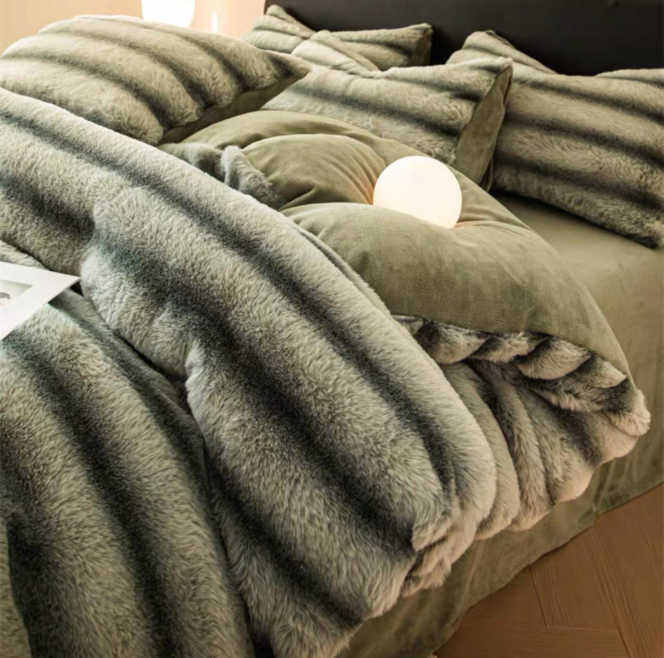 - Set de lenjerie de pat din catifea fleece din blană de iepure artificială de lux, moale, caldă.