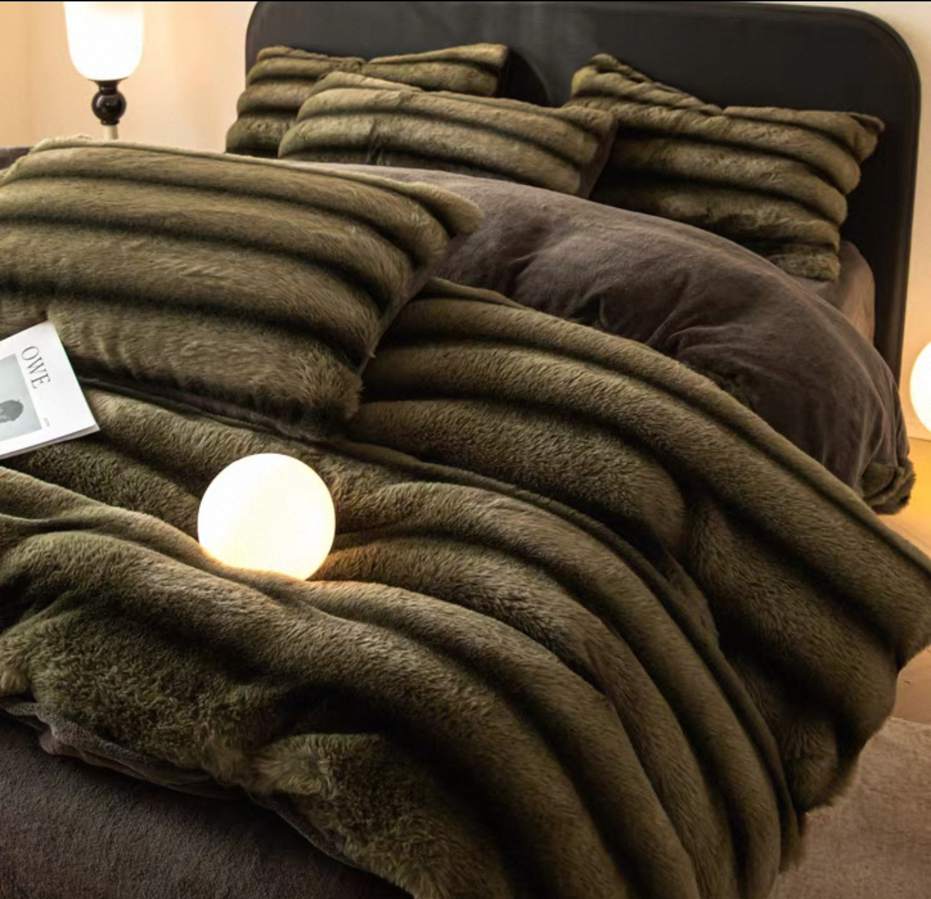 - Set de lenjerie de pat din catifea fleece din blană de iepure artificială de lux, moale, caldă.