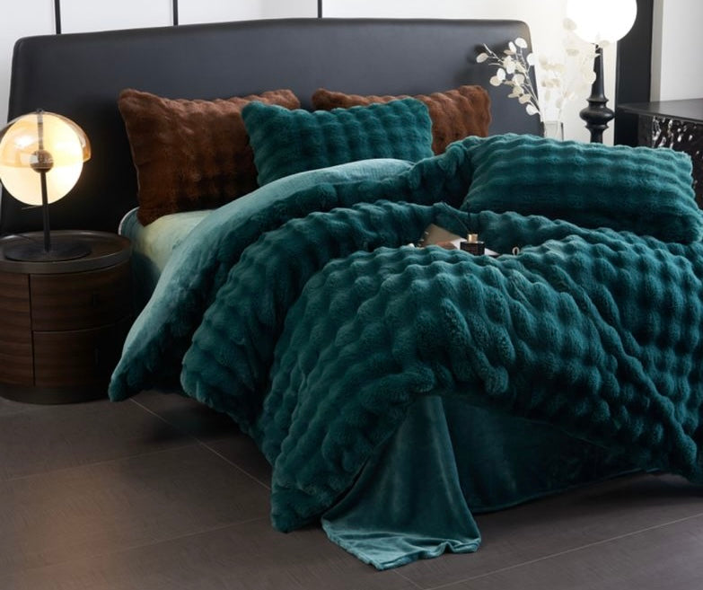 - Set de lenjerie de pat din catifea fleece din blană de iepure artificială de lux, moale, caldă.