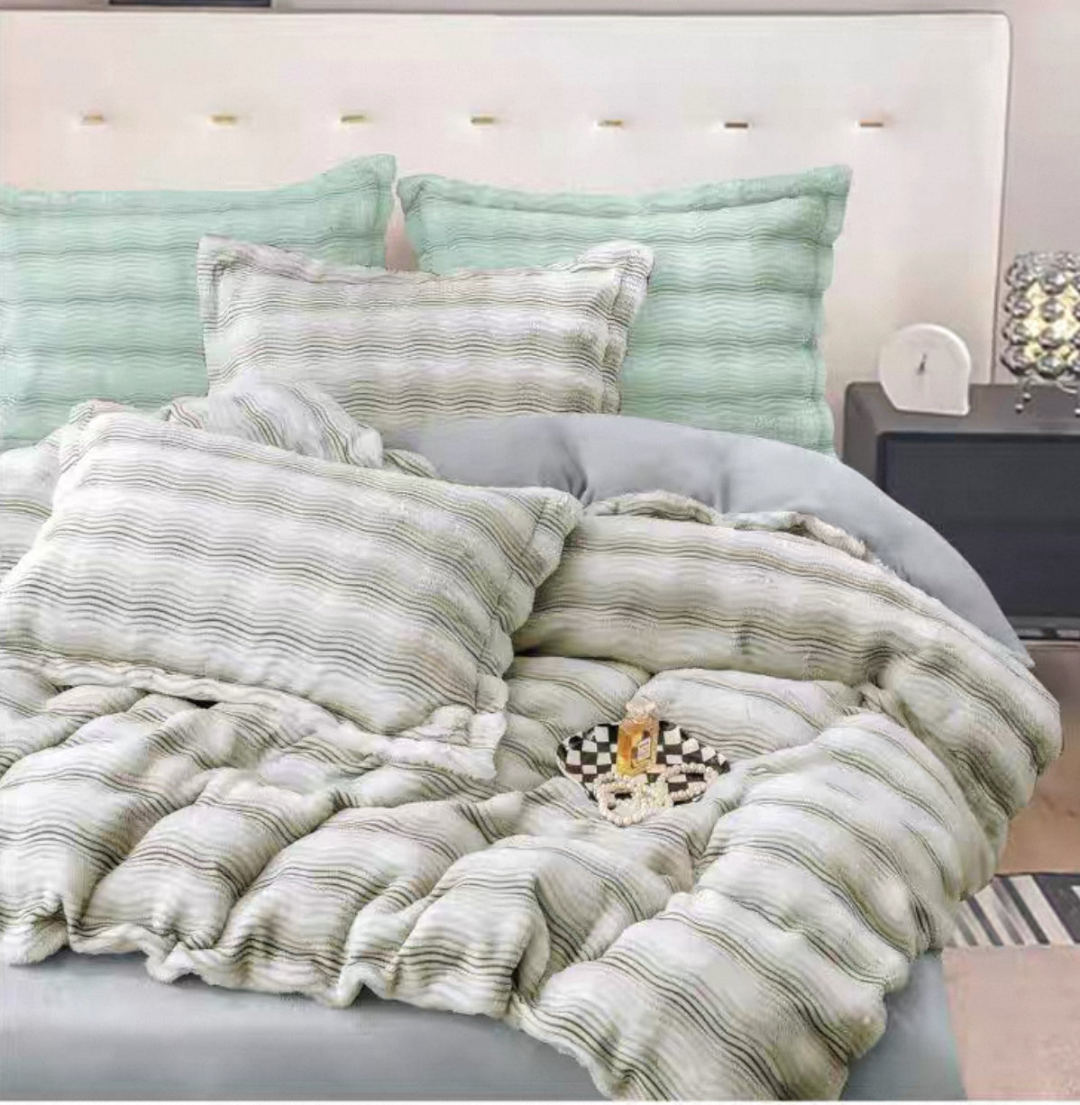 • Set de lenjerie de pat din catifea fleece din blană de iepure artificială de lux, moale, caldă.
