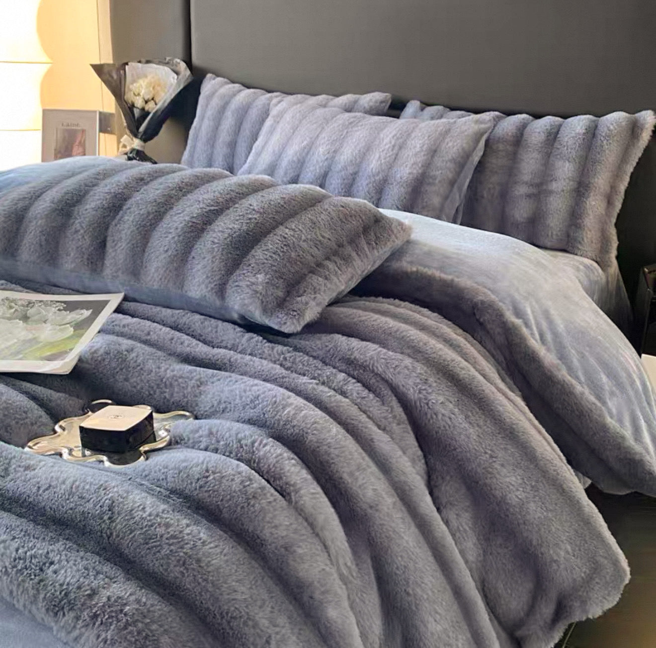 • Set de lenjerie de pat din catifea fleece din blană de iepure artificială de lux, moale, caldă.