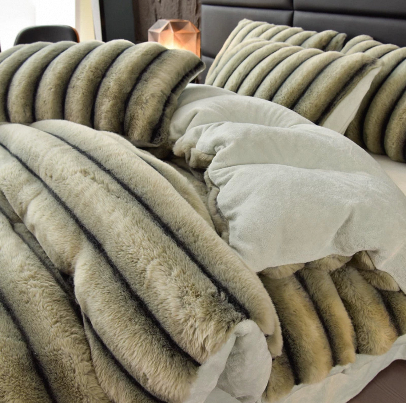 - Set de lenjerie de pat din catifea fleece din blană de iepure artificială de lux, moale, caldă.