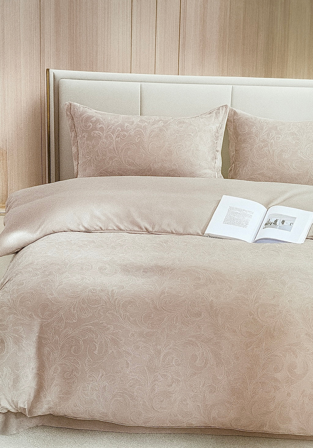 Textura fină, ușor lucioasă, este îmbogățită cu un model subtil, țesut direct în material, oferind un plus de eleganță...