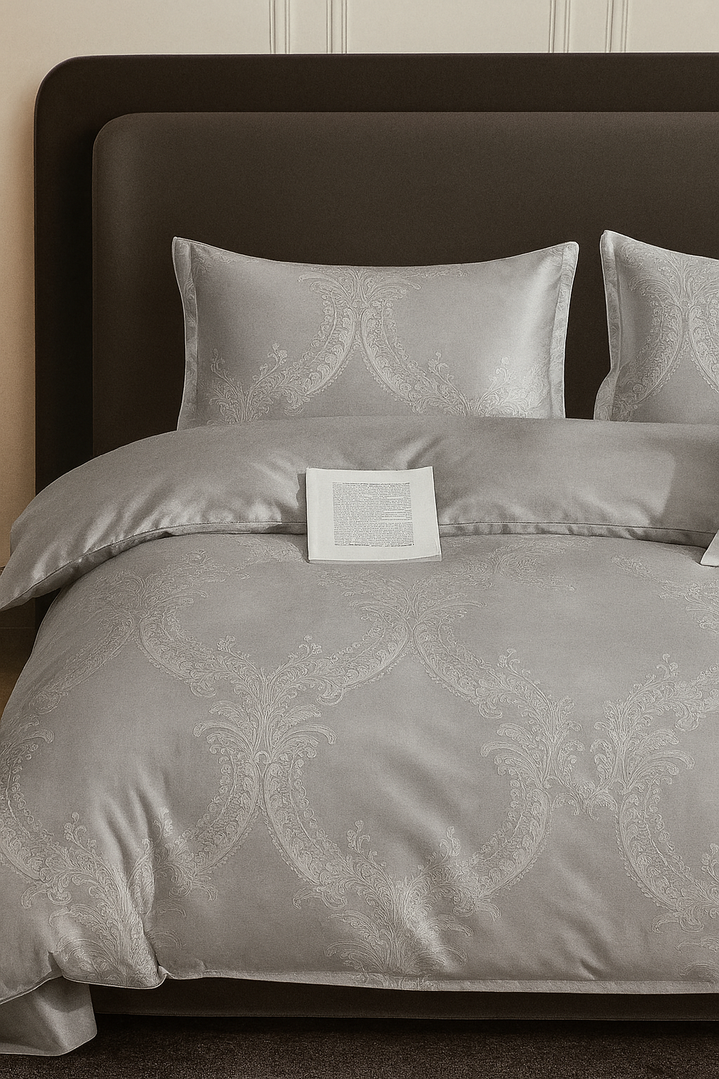 Textura fină, ușor lucioasă, este îmbogățită cu un model subtil, țesut direct în material, oferind un plus de eleganță...