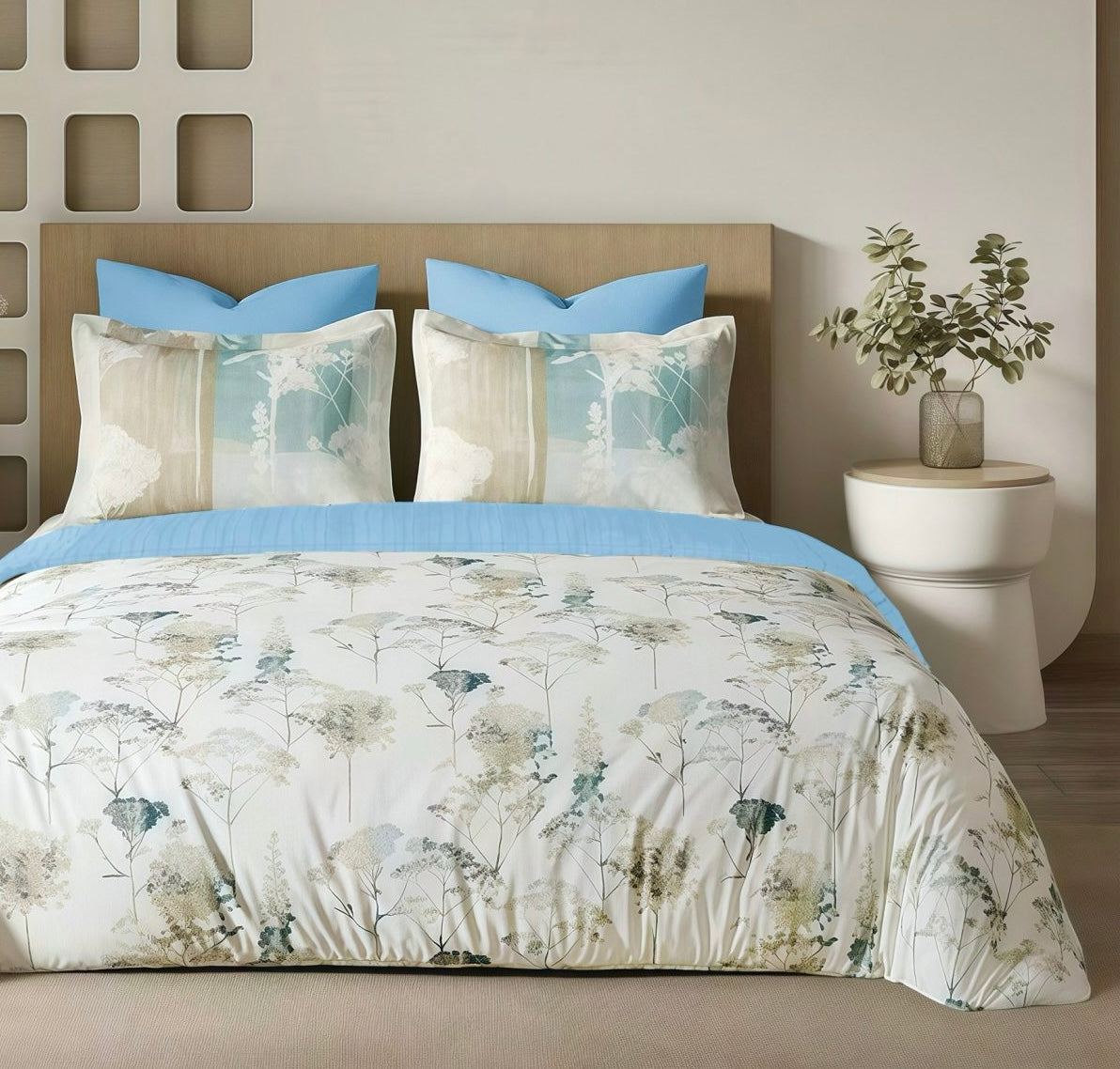 Acest set de lenjerie de pat este realizat din bumbac tip finet premium, asigurând moliciune și respirabilitate excepționale pentru un somn odihnitor. Setul are o paletă liniștitoare de culori pastelate, perfectă pentru a crea o ambianță calmă și liniștită. Împodobită cu modele abstracte elegante, adaugă o notă de sofisticare modernă spațiului tău. Ideal pentru a vă îmbunătăți decorul casei cu o eleganță discretă, acest set de lenjerie de pat este un must-have pentru cei care apreciază atât stilul, cât și confortul.