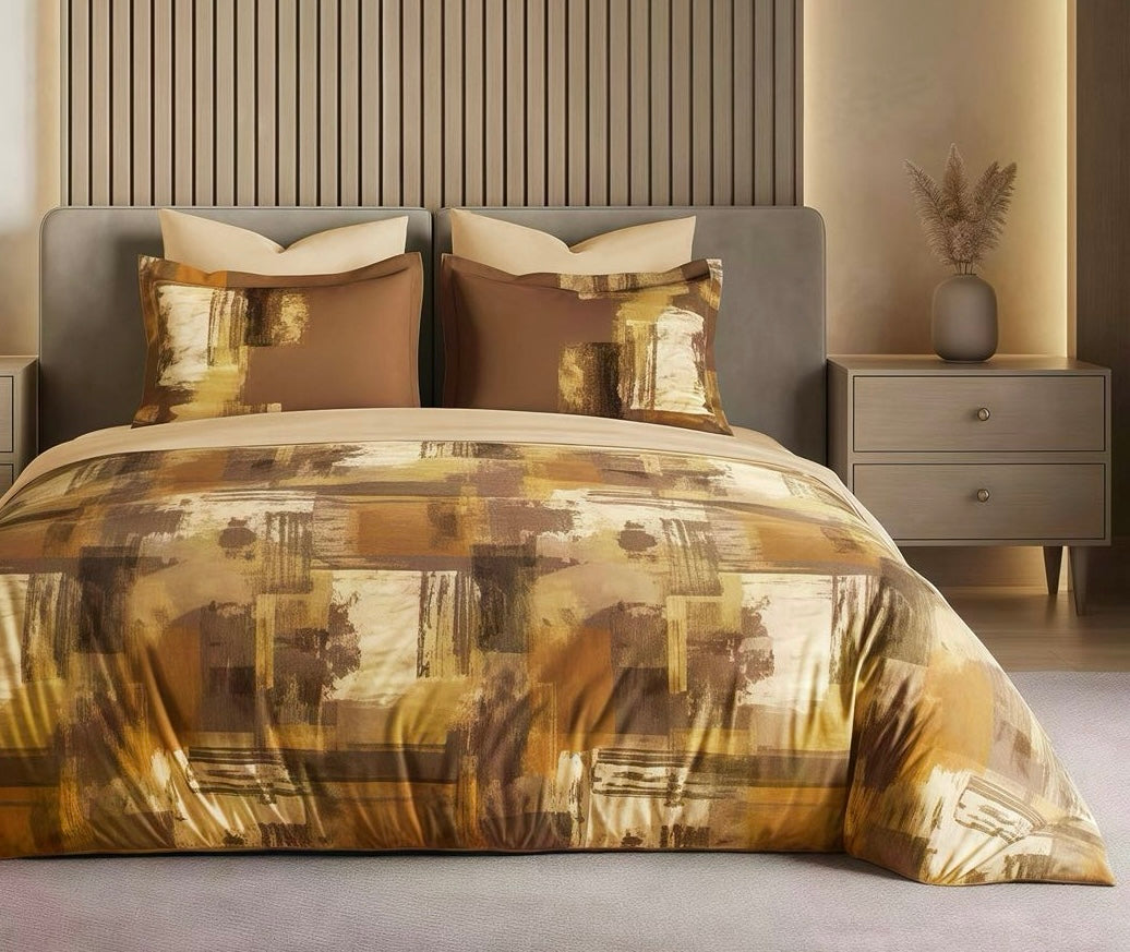 Acest set de lenjerie de pat este realizat din bumbac tip finet premium, asigurând moliciune și respirabilitate excepționale pentru un somn odihnitor. Setul are o paletă liniștitoare de culori pastelate, perfectă pentru a crea o ambianță calmă și liniștită. Împodobită cu modele abstracte elegante, adaugă o notă de sofisticare modernă spațiului tău. Ideal pentru a vă îmbunătăți decorul casei cu o eleganță discretă, acest set de lenjerie de pat este un must-have pentru cei care apreciază atât stilul, cât și confortul.