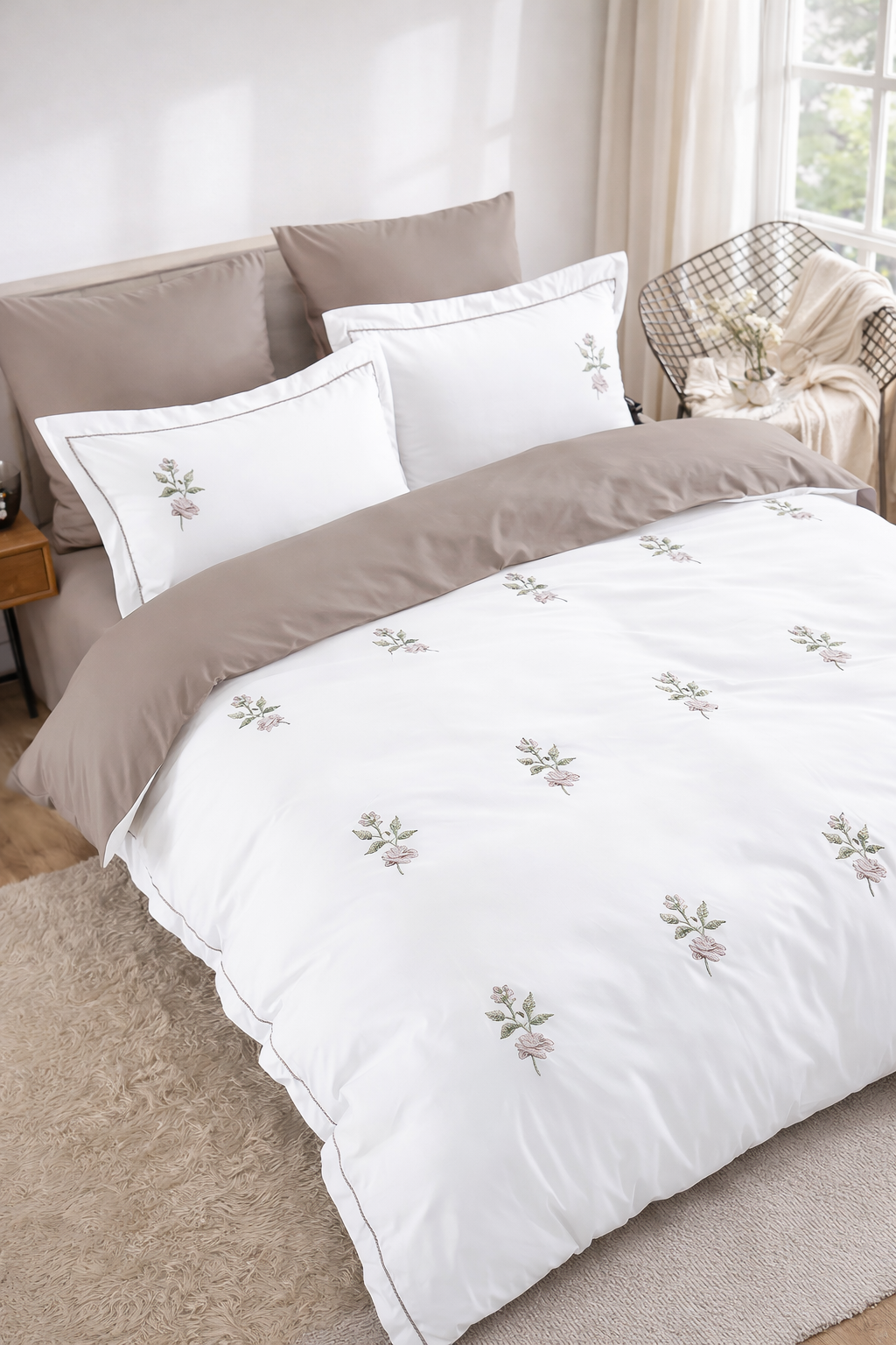 Set Lenjerie Pat 2 Persoane – 100% Bumbac Natural (6 Piese)