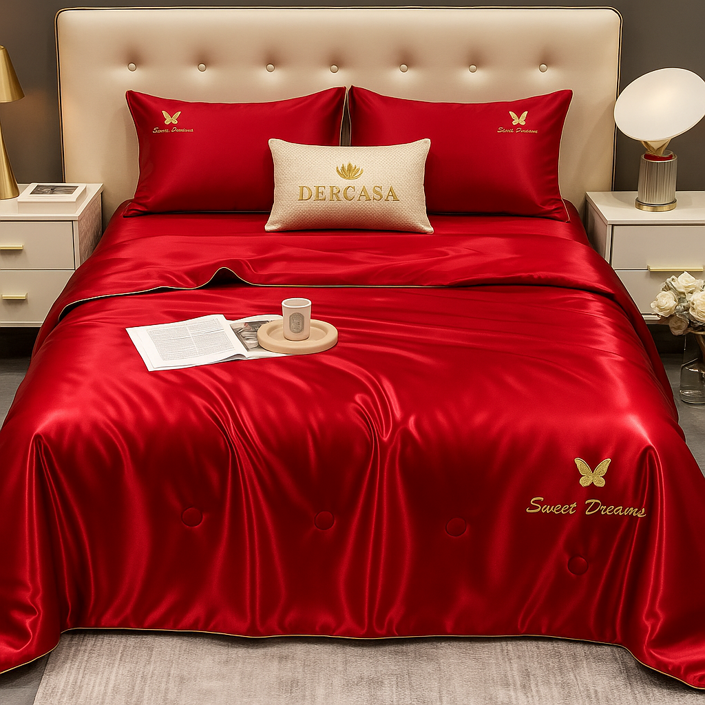 Set Luxury + pilotă ușoară inclusă din Mătase, 4 piese, pat dublu, Cod: FMT3