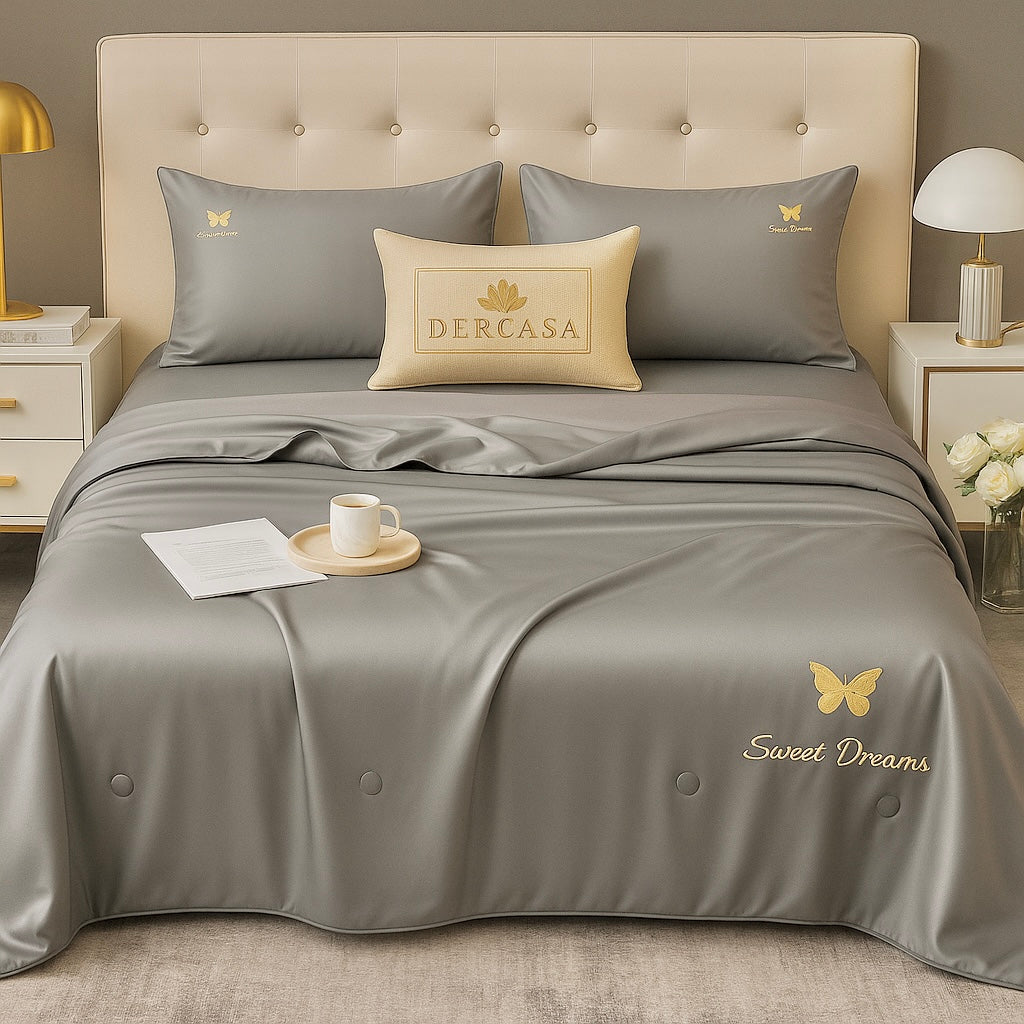 Set Luxury + pilotă ușoară inclusă din Mătase, 4 piese, pat dublu, Cod: FMT4