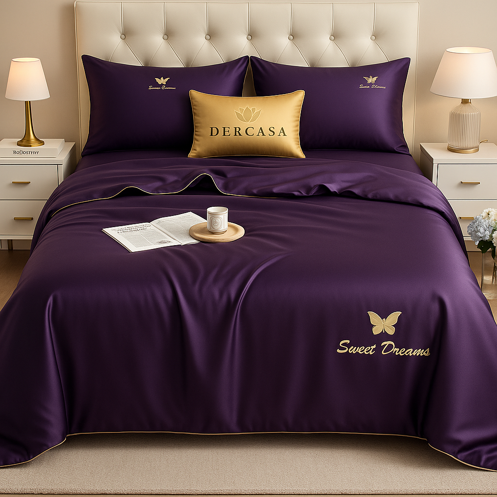 Set Luxury + pilotă ușoară inclusă din Mătase, 4 piese, pat dublu, Cod: FMT5