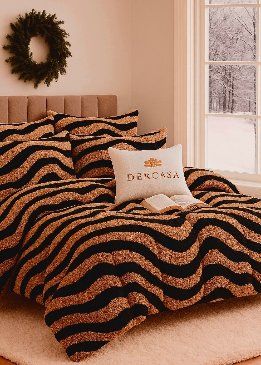 Adaugă un plus de stil și confort dormitorului tău cu această lenjerie de pat din material cocolino plușat, moale, călduroasă și elegantă. Designul cu imprimeu zebra oferă o notă modernă și rafinată, perfectă pentru orice decor.