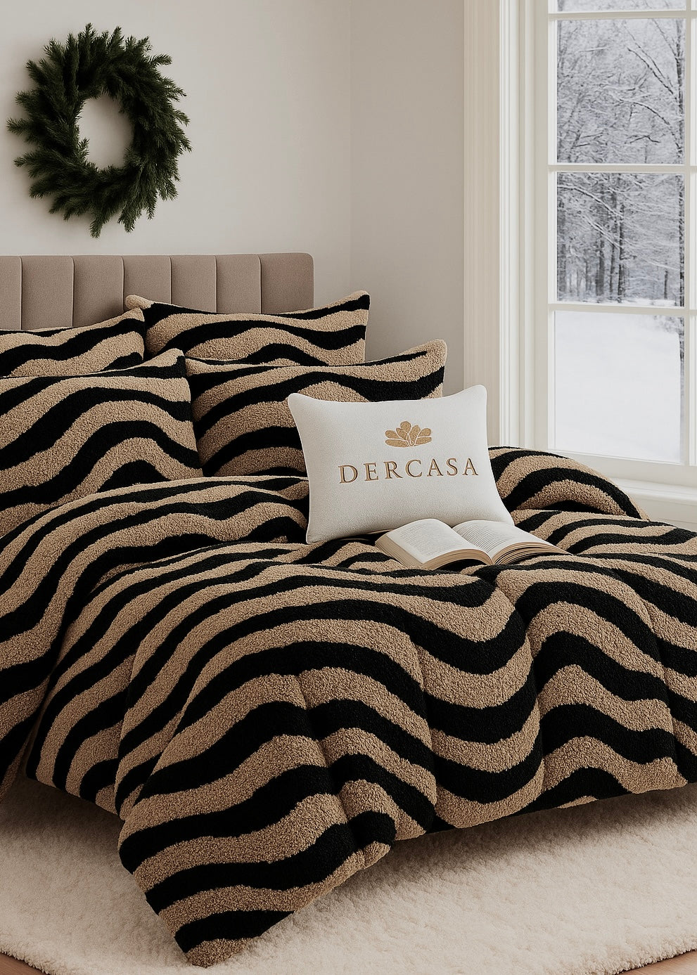 • Design elegant: imprimeu zebra alb-negru, ideal pentru dormitoare moderne
