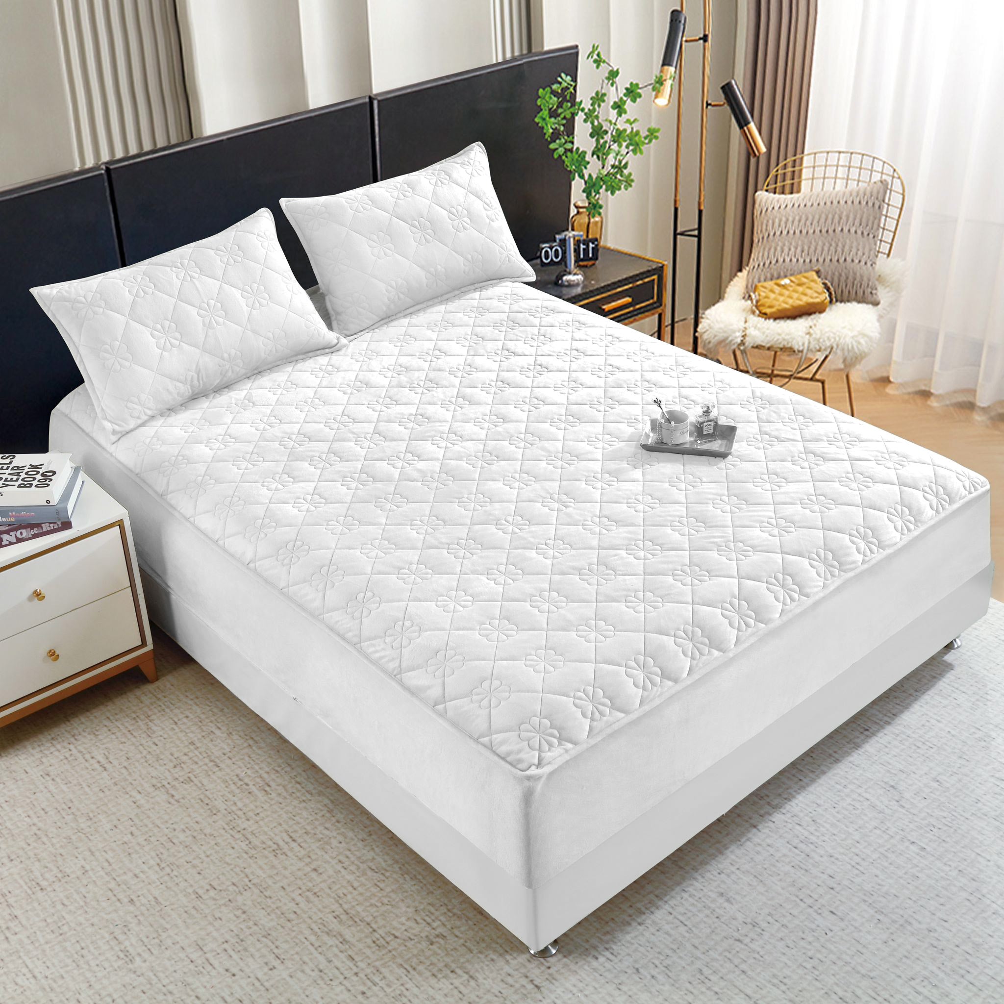Aceste huse de saltea cu elastic și topper inclus oferă un plus de confort pentru somnul tău și o soluție eficienta daca iti doresti ca patul tau sa fie mai moale cand te asezi pe el. Fabricate din catifea foarte moale și confortabila, aceste huse de saltea oferă protecție suplimentară și susțin nestingherit și uniform spatele. În plus, acestea includ și două fețe de pernă pentru un somn odihnitor și relaxant. Înlocuind husele obișnuite de saltea cu aceste huse cu Topper inclus, îți vei îmbunătăți semnificativ calitatea somnului.