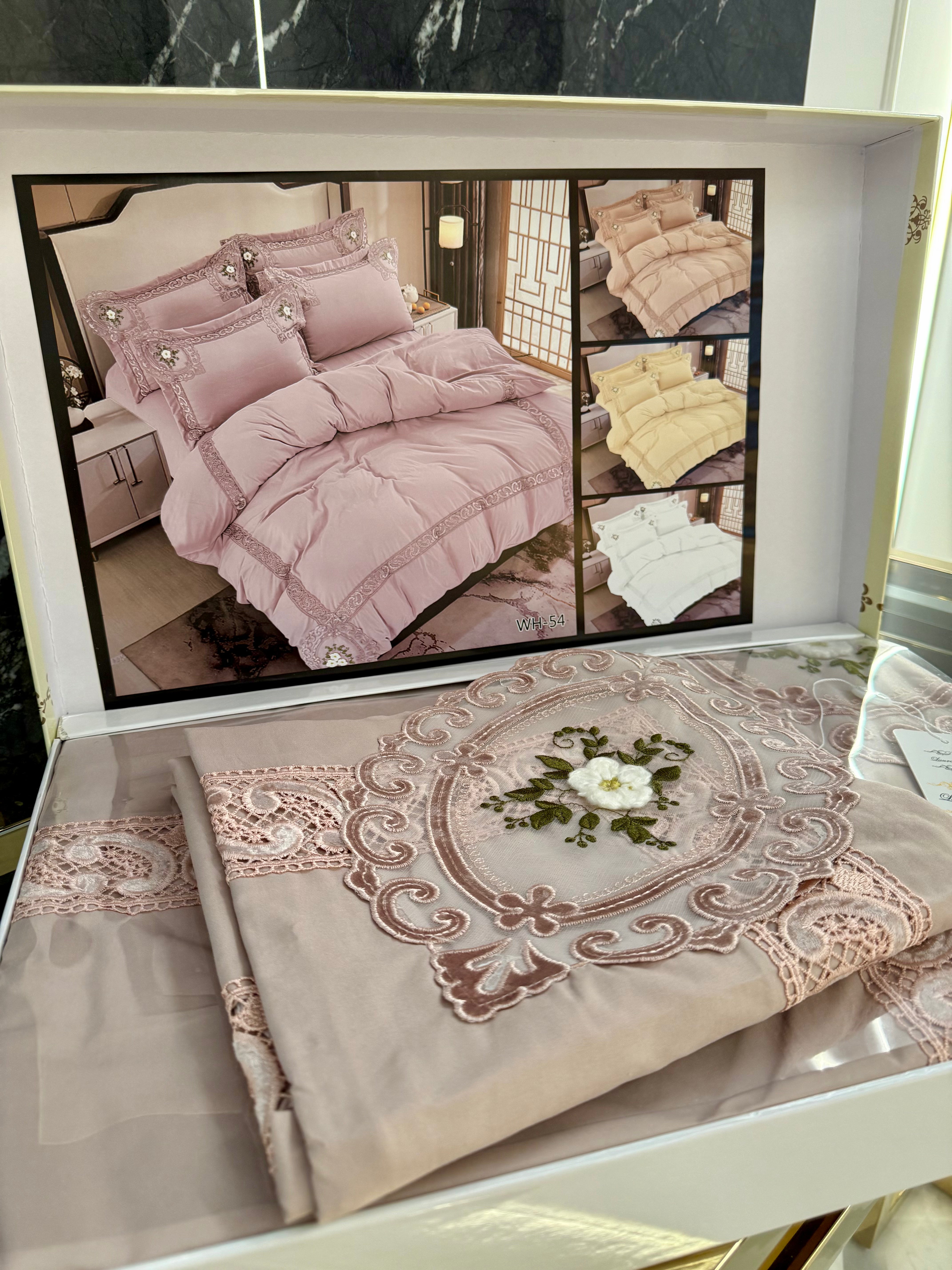Inspirată de rafinamentul naturii și eleganța detaliilor brodate, această colecție aduce un strop de romantism și delicatețe în dormitorul tău. Setul este disponibil în culori rafinate: alb, somon pudrat, gri și crem.