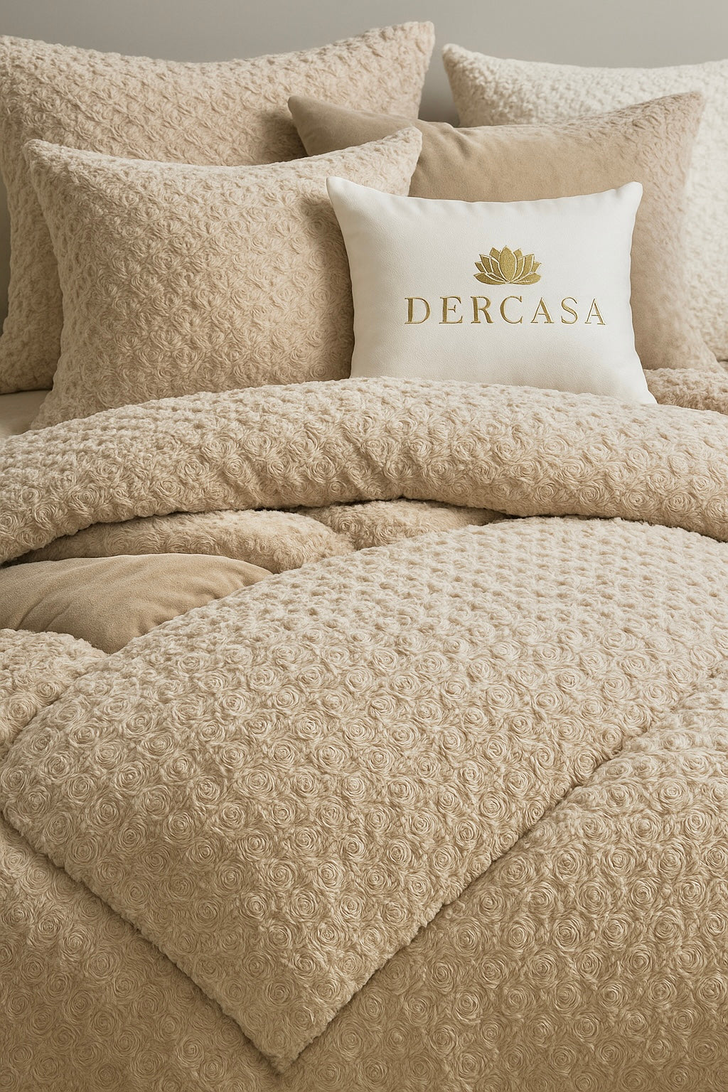 Lenjerie pufoasa COCOLINO cu 4 piese, pentru pat dublu. Produsul prezinta doua texturi de material cocolino, astfel incat cearsaful de pat, partea inferioara a cearsafului de pilota si partea inferioara a fetelor de perna sunt din microfibra plusata fina; cearsaful de pilota pe fata principala si fetele de perna sunt din cocolino super pufos, fluffy.