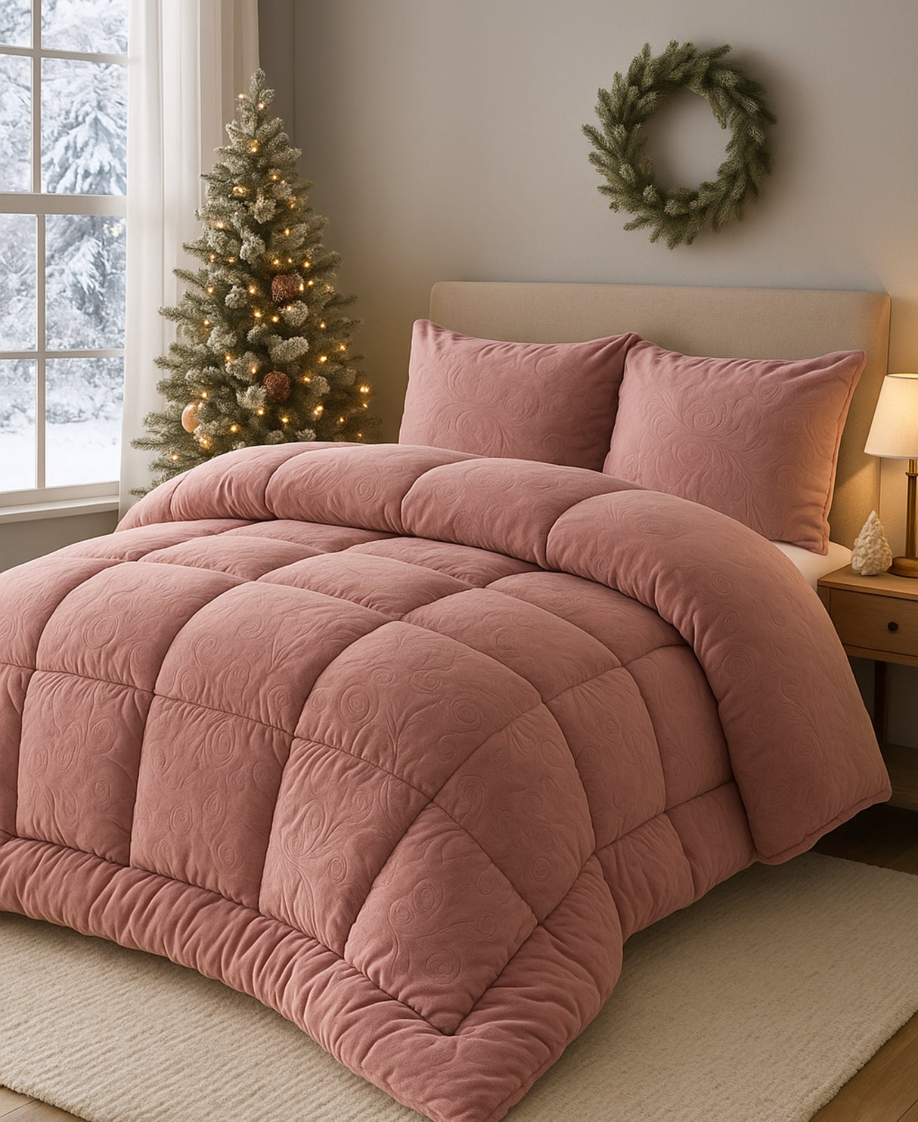 • Culoare: roz pudrat cald – adaugă o notă rafinată și modernă oricărui dormitor