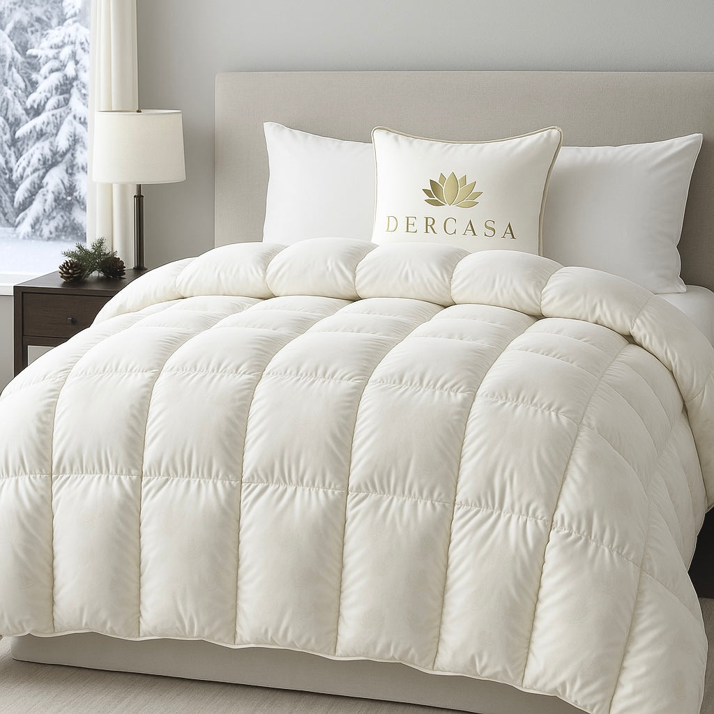 Pilotă cu Pene de Rață – 200 × 200 cm, Alb