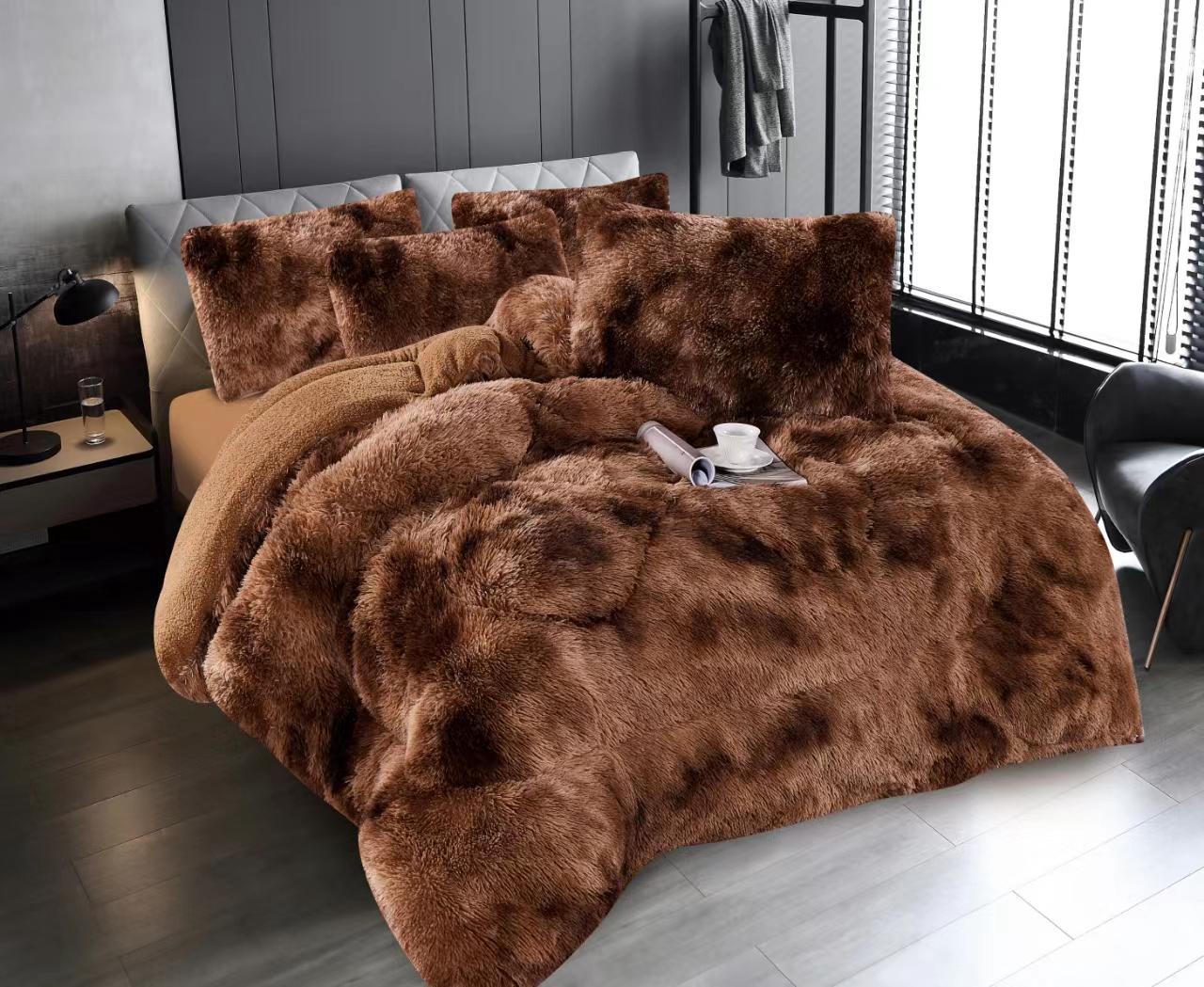Material: microfibră plușată, groasă și foarte densă (are textura catifelată și este foarte placută la atingere. Nu intră la apă și nu necesită călcare).