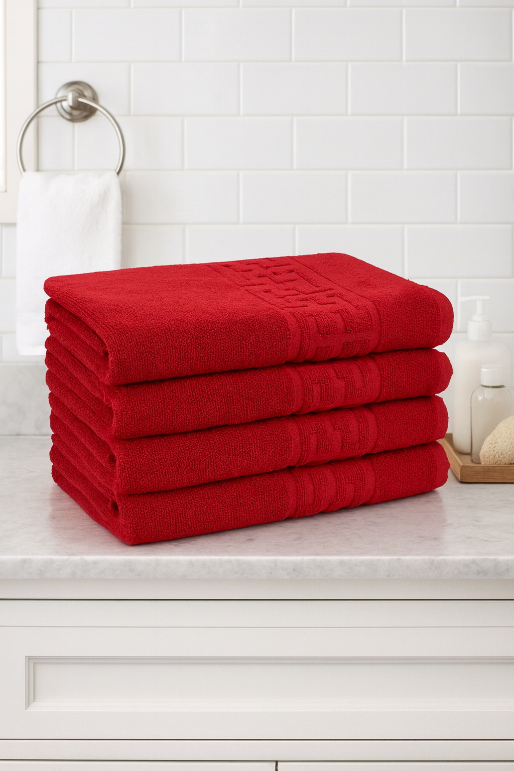 Set de 4 prosoape din bumbac 100% cu putere mare de absortie Rosii– 50 x 90 cm Elegance